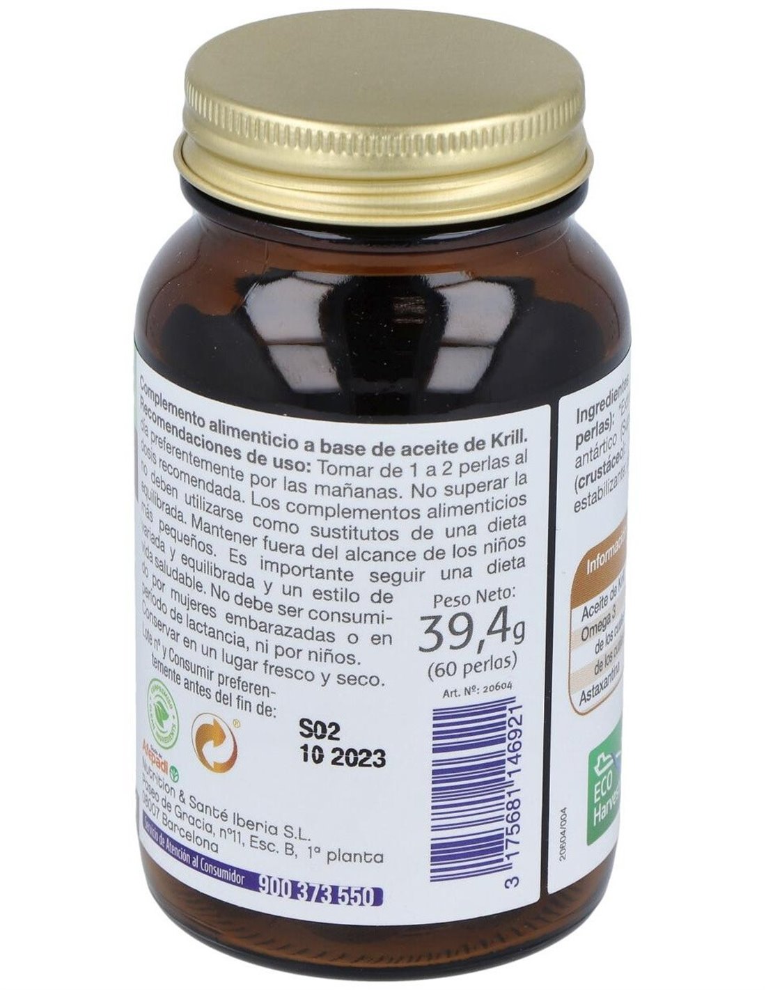 Extracto lipídico del crustáceo Krill antártico (Superba® Krill (Euphasia superba)): 1000 mg, cápsula: gelatina, estabilizante: glicerina, aroma.