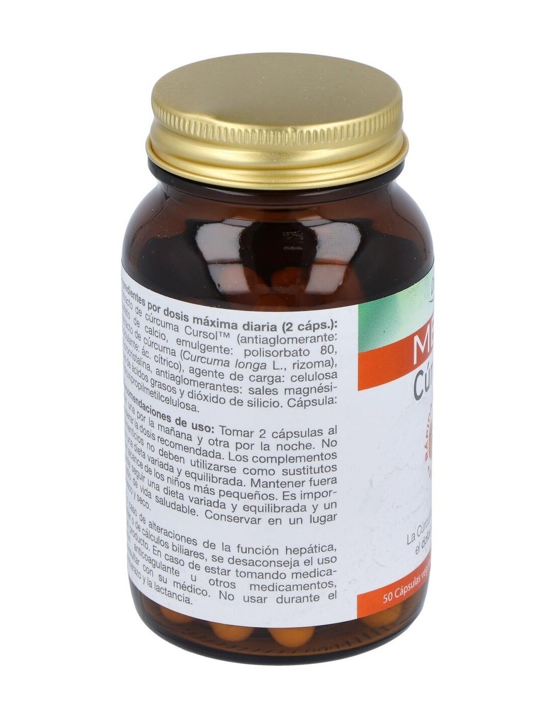 Cápsulas elaboradas a base de cúrcuma. Ayuda a aliviar el dolor inflamatorio.La cúrcuma es una planta originaria de la India cuya raíz es rica en curcuminoides, un tipo de flavonoides con múltiples efectos beneficiosos en el organismo. Con extracto de cúrcuma Cursol, una cúrcuma optimizada gracias a un exclusivo y patentado proceso que incrementa su solubilidad y optimiza su biodisponibilidad. Sin lactosa, gluten ni ingredientes de origen animal.