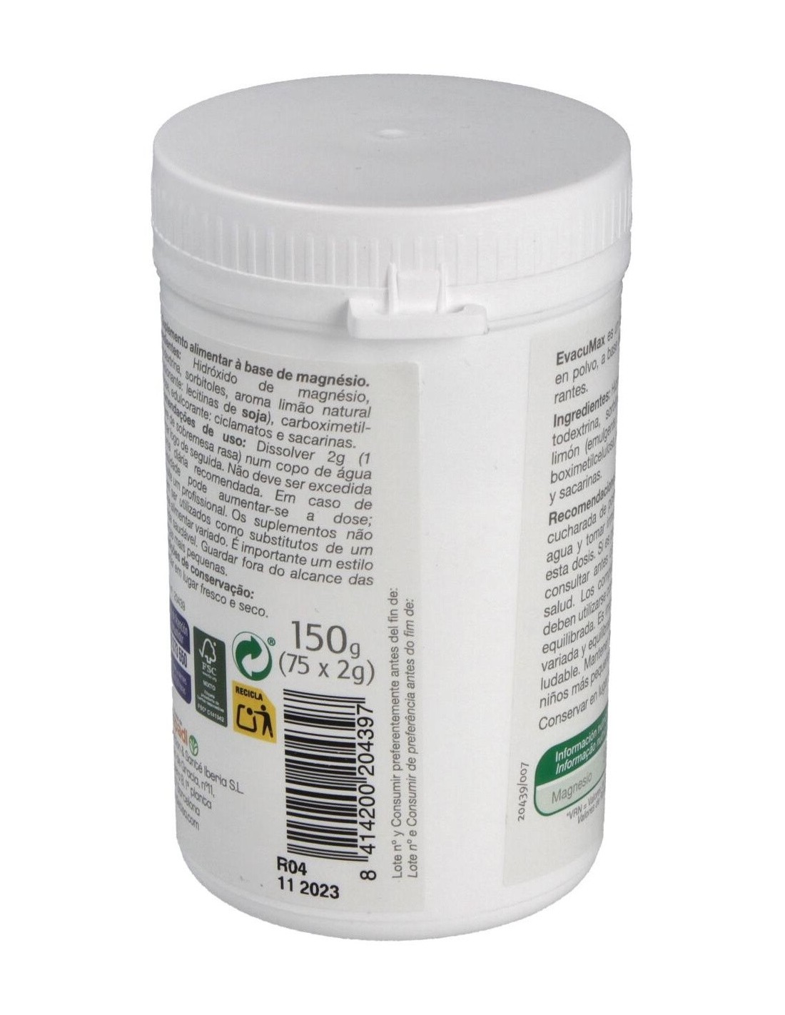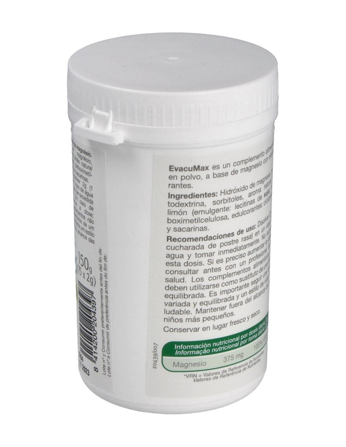 Suplemento en polvo, a base de magnesio, el cual contribuye a una normal función digestiva y puede favorecer la evacuación.