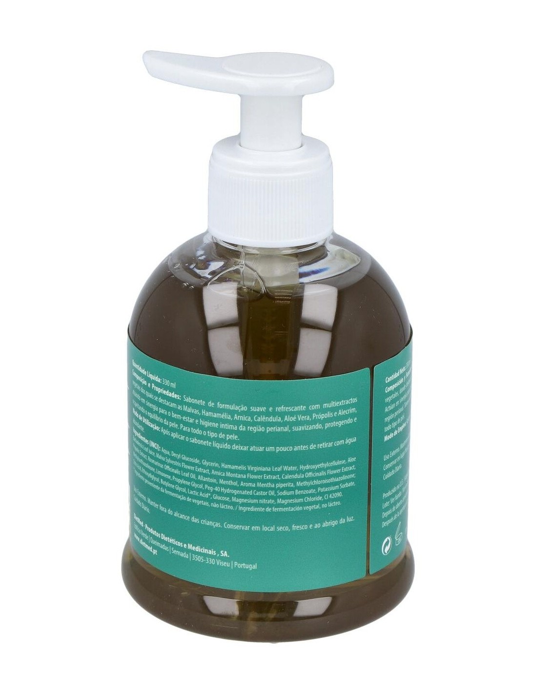 Jabón con multiextractos vegetales entre los cuales están la Malva, Hamamelis, Árnica, Caléndula, Aloe vera, Própolis y Romero.