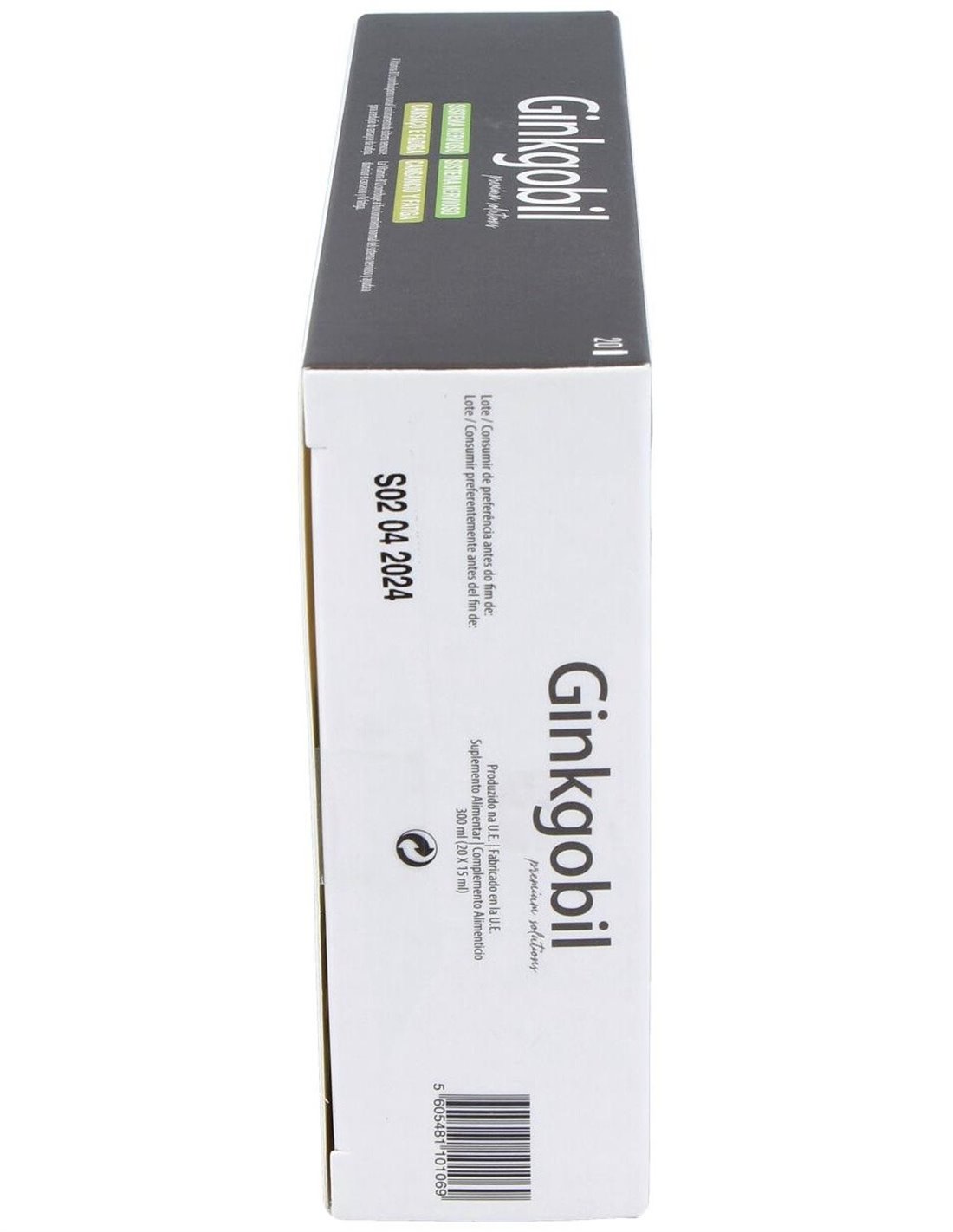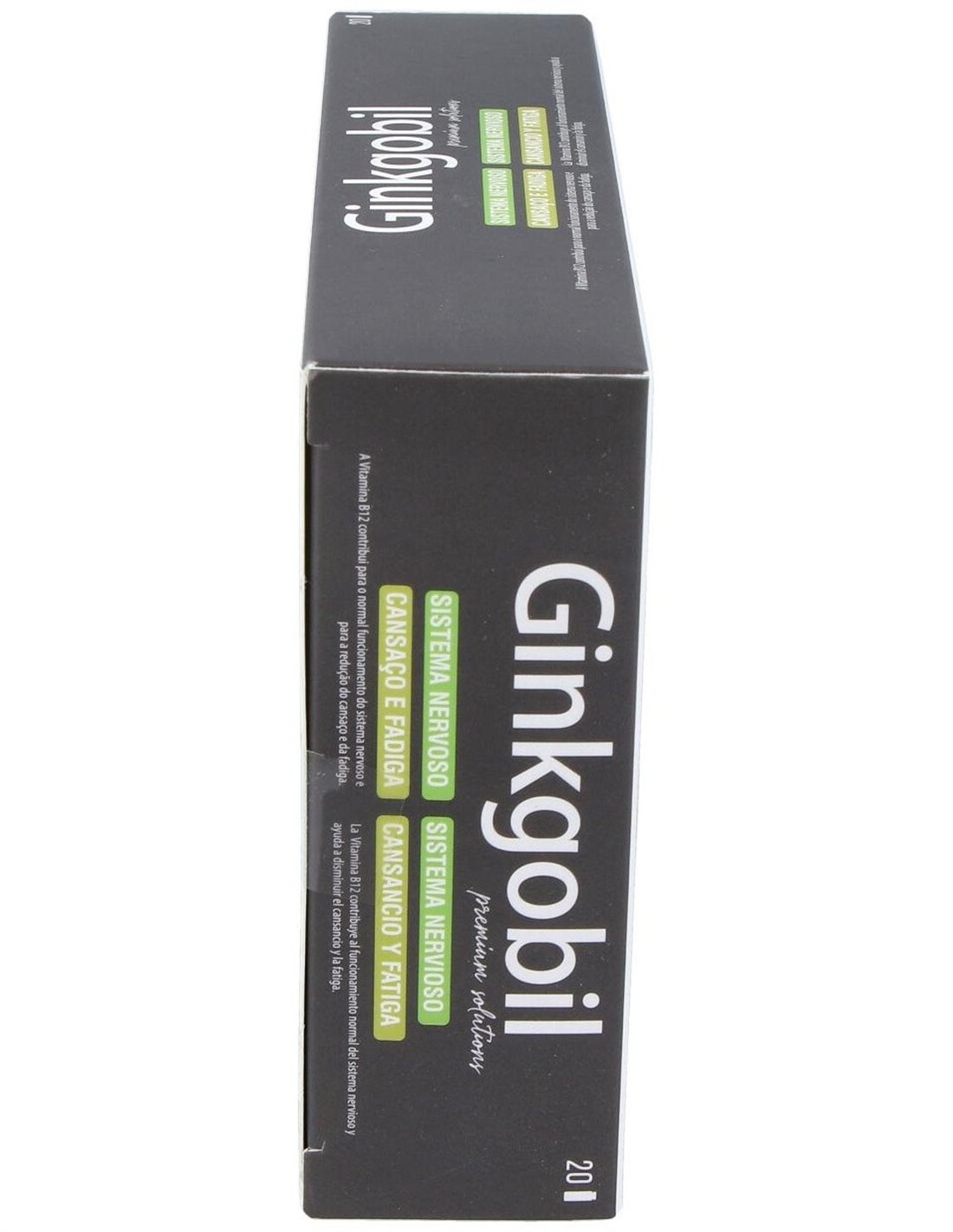 Extracto Fluido de Ginkgo Biloba (conteniendo al menos 1,28% de ginkgoflavoglicósidos) 2500 mg, Extracto Seco de Ginkgo Biloba (conteniendo al menos 24% de ginkgoflavoglicósidos y 6% de lactonas terpénicas) 20 mg, Cantidad total de ginkgoflavoglicósidos: 36,80 mg (equivalente a 154 mg de extracto seco), Fosfatidilserina 20% 90 mg, Huperzia (eq. a 150 µg de huperzine A) 15 mg, Vitamina B6 1,4 mg (100% VRN*), Vitamina B12 2,5 µg (100% VRN*).