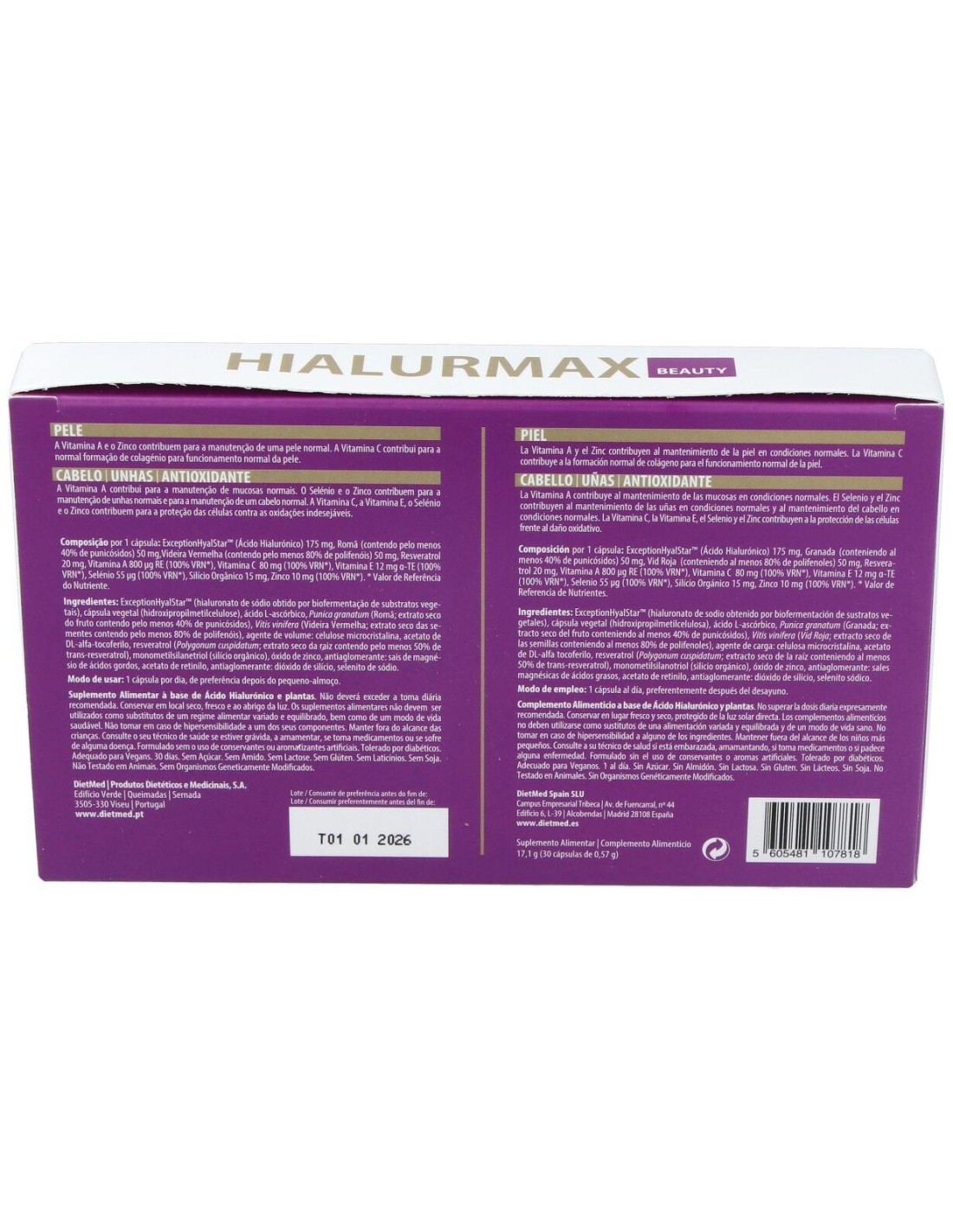 Este complemento alimenticio de Dietmed sirve como auxiliar para mantener la piel, las uñas y el cabello con un aspecto más saludable, hidratado y cuidado. El ingrediente más importante que contiene la fórmula de este producto es el ácido hialurónico. Sirve para hidratar y penetrar en la piel para regenerarla, así como a las uñas y al cabello. Cada cápsula que se ingiera brinda muchos beneficios como la atenuación de las arrugas.