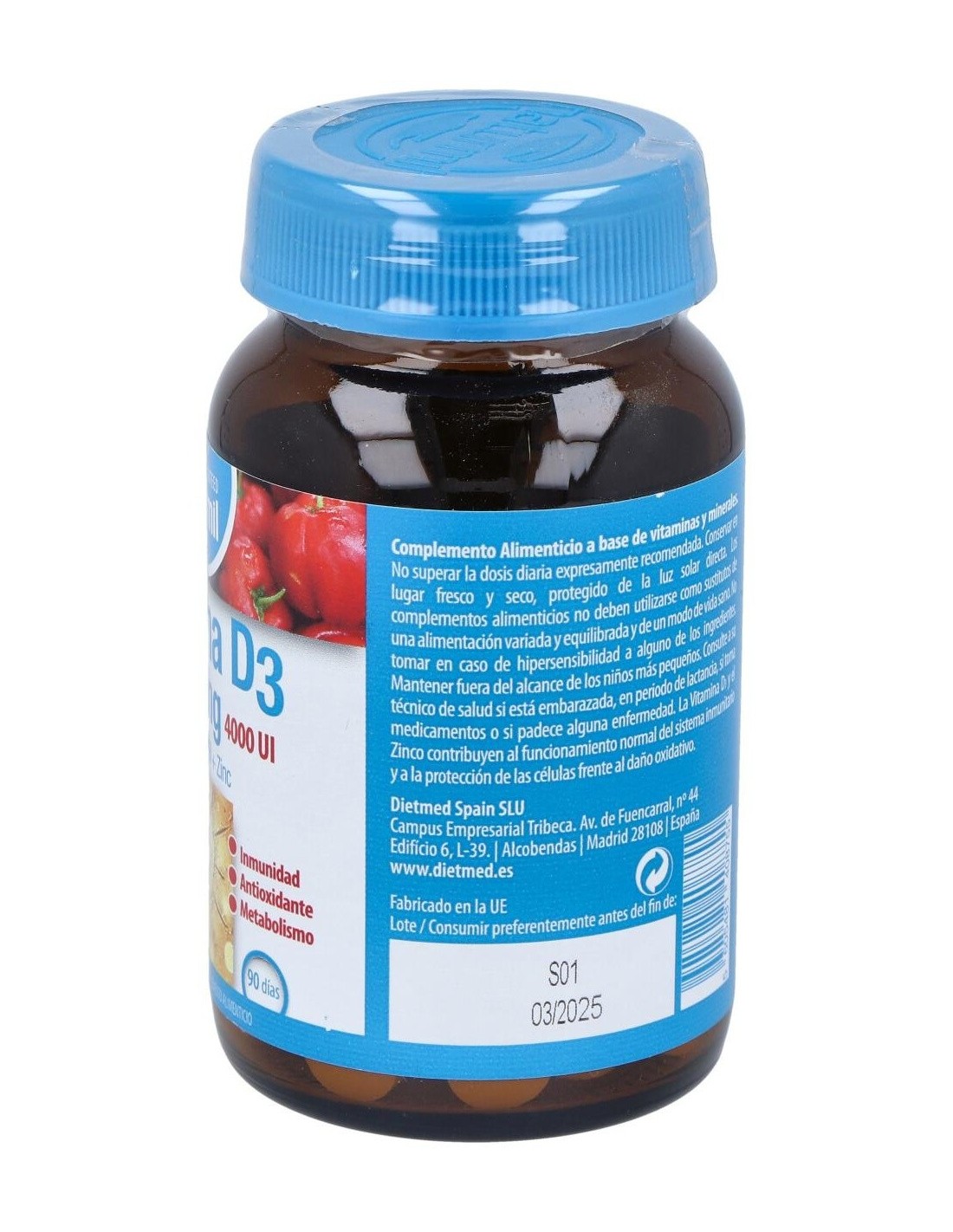 Composición activa por comprimido: 100 mcg de vitamina D3 (4.000 UI). 100 mg de acerola (50 mg de vitamina C). 10 mg de zinc.