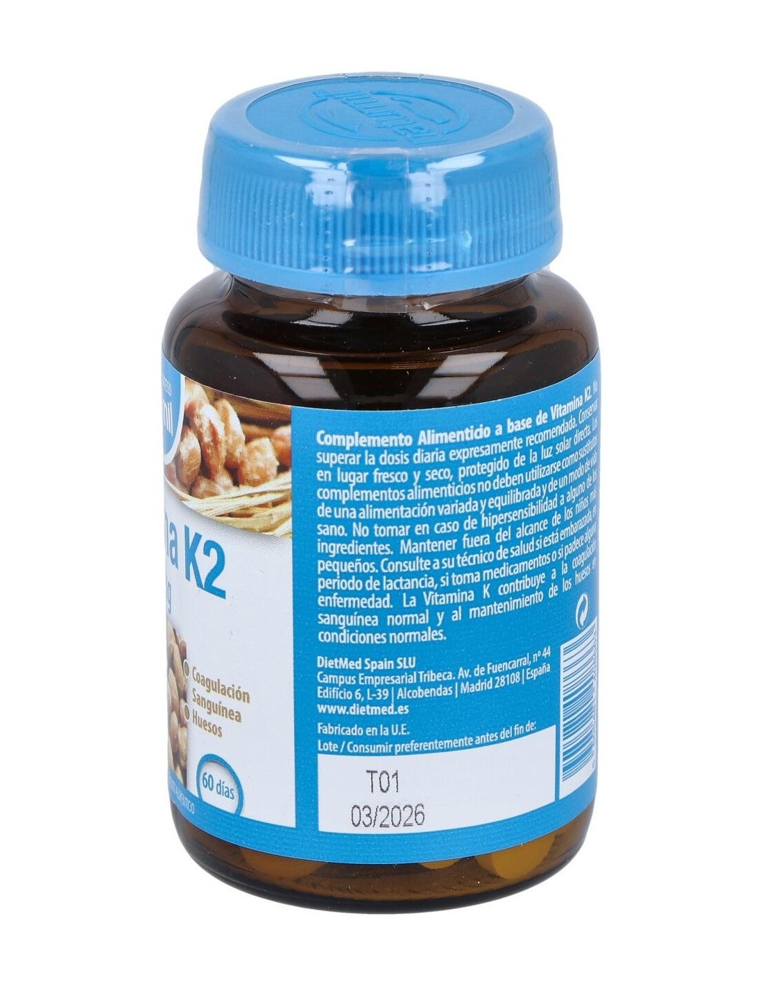 Complemento alimenticio, formulado a base de Vitamina K, que funciona como principio activo, aumentando el funcionamiento de todo el sistema oseoarticular, así como también ayudar a regular su metabolismo. Cápsulas elaboradas con un alto contenido de Vitamina k2, esencial para estimular la capacitación ósea, fortalecer los huesos y las articulaciones, así como también lograr regular la coagulación sanguínea y ayudar a prevenir las hemorragias.