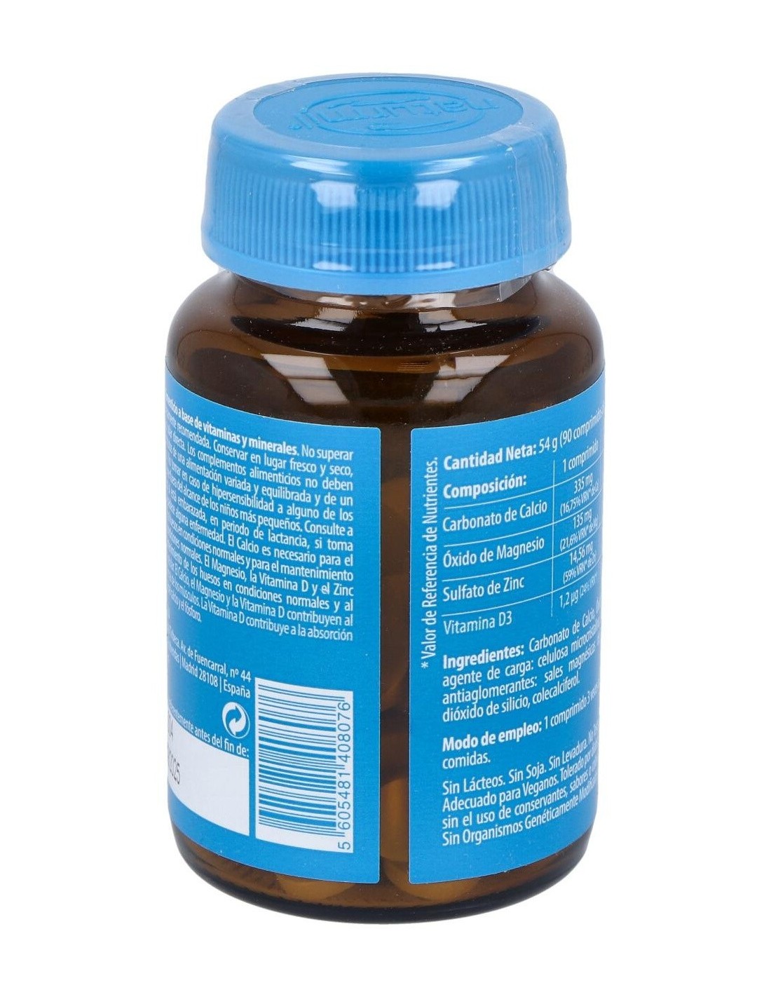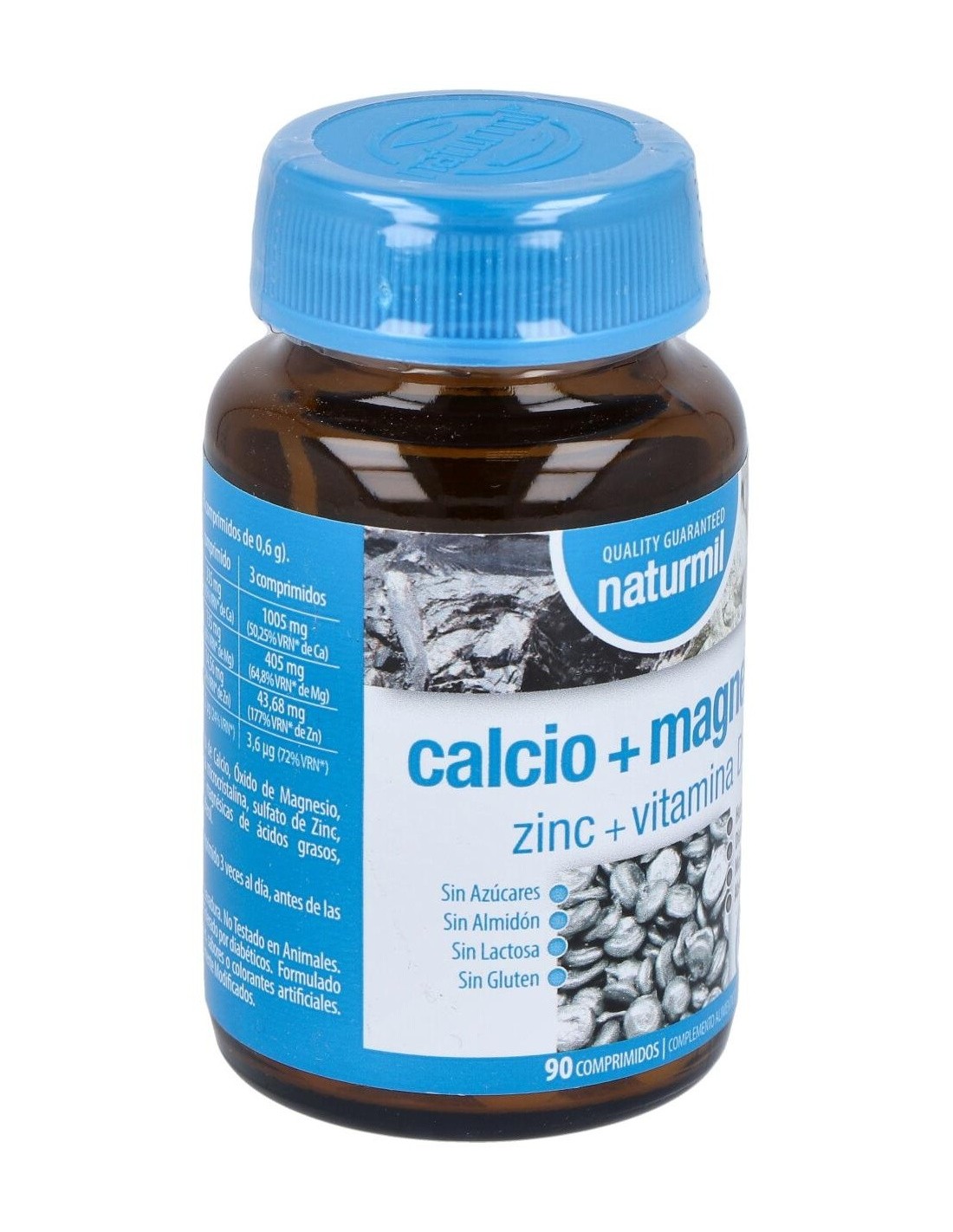Complemento alimenticio a base de calcio, magnesio, zinc y vitamina D, para mejorar la salud ósea. Contribuye a mantener los dientes fuertes y sanos, a mejorar las fibras musculares y a estimular la absorción de calcio en el cuerpo. El magnesio favorece una buena recuperación física tras actividades deportivas. Ayuda a mantener las articulaciones y huesos fuertes y sanos. Enriquecido con vitamina D3.