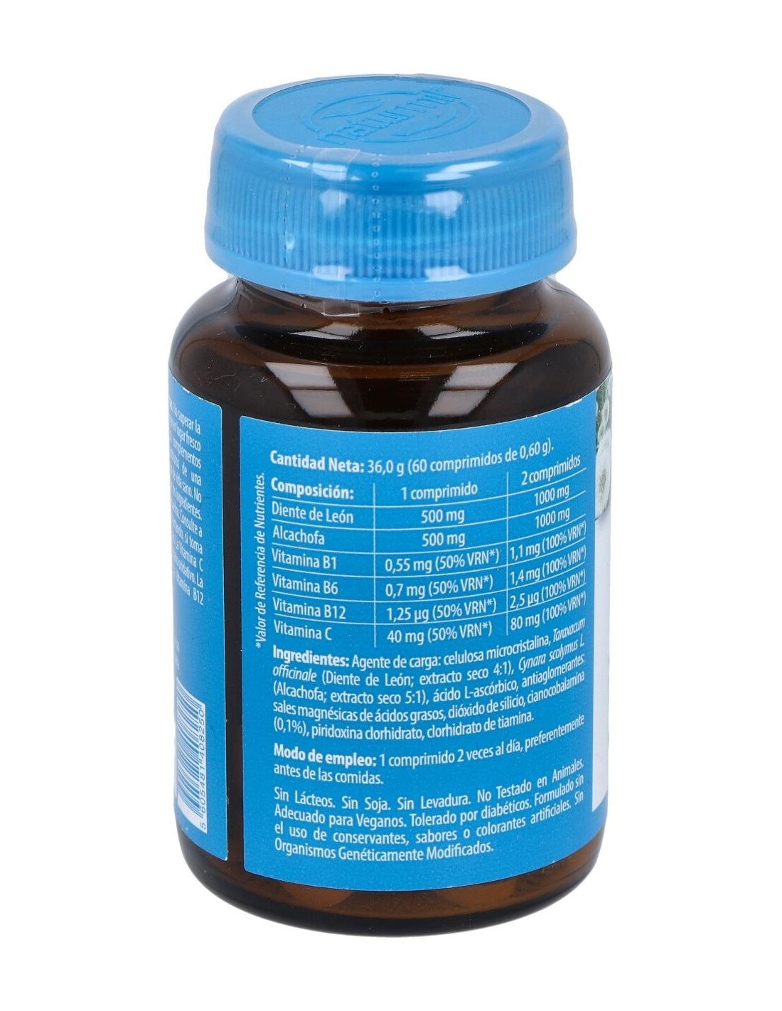 Diente de León 1000 mg, Alcachofa 1000 mg, Vitamina B1 1,1 mg (100% VRN*), Vitamina B6 1,4 mg (100% VRN*), Vitamina B12 2,5 µg (100% VRN*), Vitamina C 80 mg (100% VRN*).