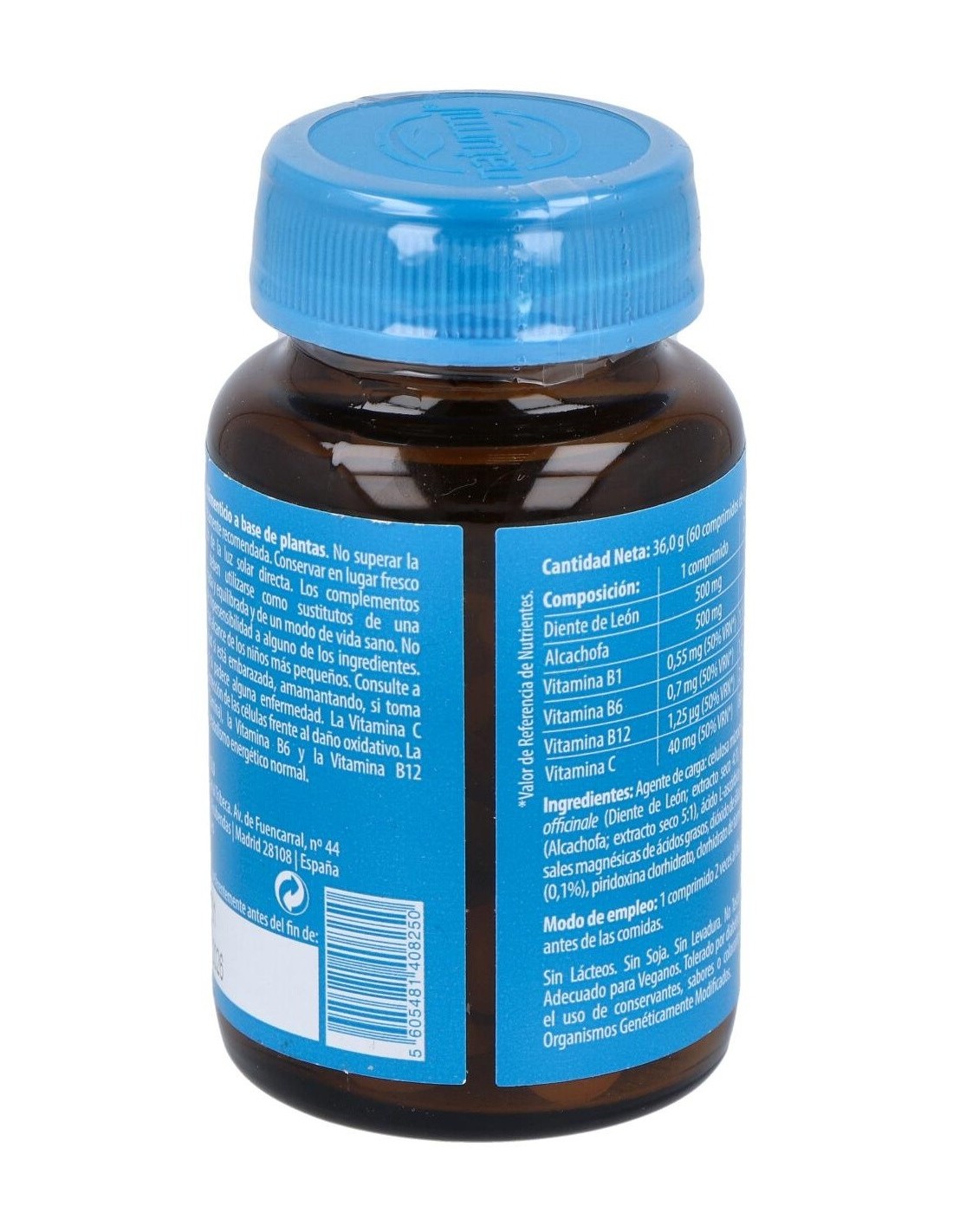 Agente de carga: celulosa microcristalina, Taraxacum officinale (Diente de León: extracto seco 4:1), Cynara scolymus L. (Alcachofaa: extracto seco 5:1), ácido l ascórbico, antiaglomerantes: estearato de magnesio, dióxido de silicio, cianocobalamina (0,1%), clorhidrato de piridoxina, clorhidrato de tiamina.