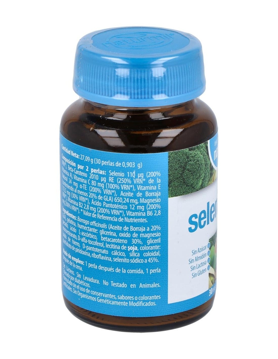 Selenio 110 µg (200% VRN*): Betacaroteno 2010 µg RE (250 % VRN* en Vitamina A): Vitamina C 80 mg (100% VRN*): Vitamina E natural 24 mg a-TE (200% VRN*): Aceite de Borraja (contendo 20% GLA) 650,24 mg: Magnesio 112,5 mg (30% VRN*): Ácido Pantoténico 12 mg (200% VRN*): Vitamina B2 2,8 mg (200% VRN*): Vitamina B6 2,8 mg (200% VRN*).