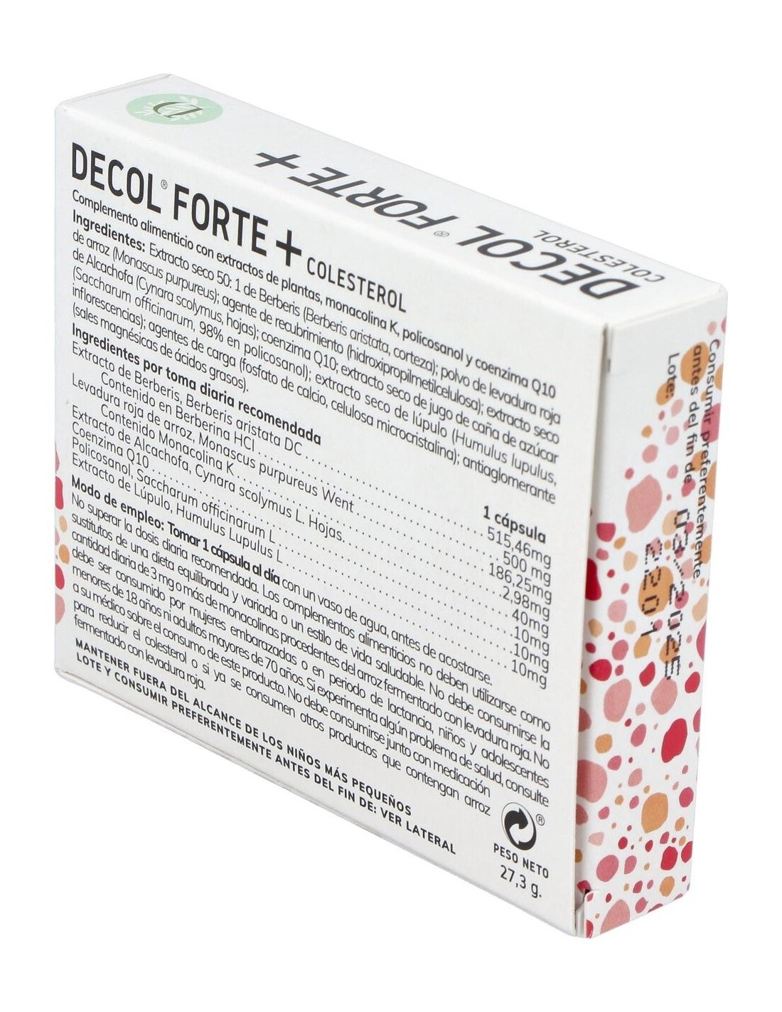 Complemento alimenticio presentado en forma de cápsulas, basado en una sinergia de nutrientes con monacolina K. Contribuye al mantenimiento de niveles normales de colesterol. La monacolina K procede de la fermentación de la levadura roja de arroz, y se potencia a través de la combinación de los extractos de berberis y lúpulo, policosanol y coenzima Q10. Adecuado para adultos.