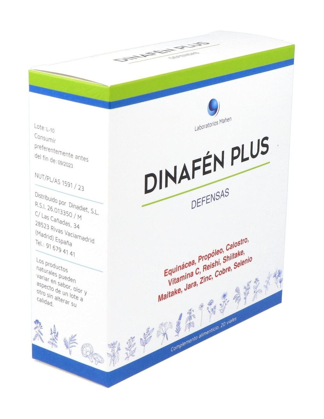 Dinafen Plus 20 viales es un complemento alimenticio en formato líquido que ayuda al buen funcionamiento del sistema inmunitario. Formulado con calostro, equinácea, jara, propóleo y hongos shiitake, reishi y maitake ayuda a reforzar las defensas.