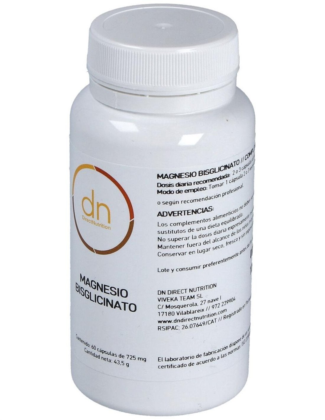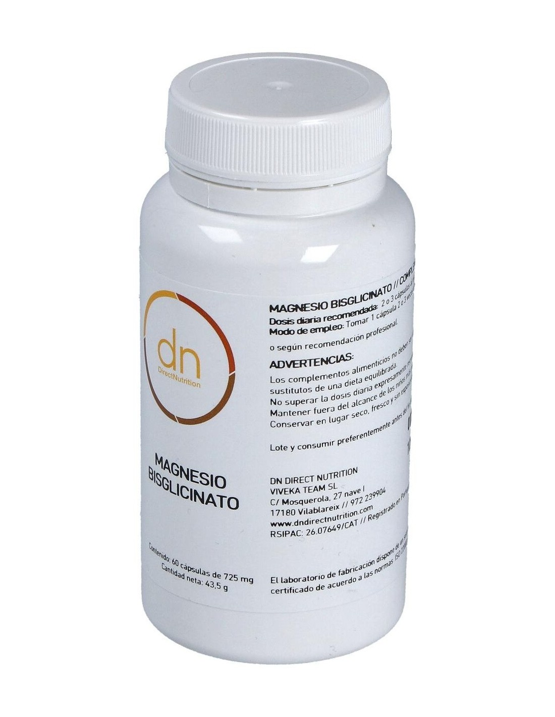 Magnesio Bisglicinado 60Vcap. de Direct Nutrition