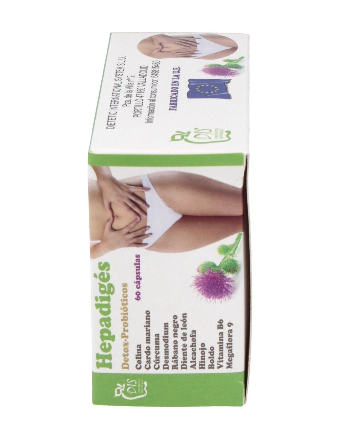 Colina bitartrato 210 mg: Envoltura (gelatina): Cardomariano, semillas, extracto seco al 80% de silimarina (Silybum marianum)160 mg: Alcachofa,hojas, extracto seco al 2,5% de cinarina (Cynara scolimus L.) 160 mg: Hinojo, fruto, extractoseco10:1 (Foeniculum vulgare ) 160 mg: Rábano Negro, fruto, extracto seco ratio 5:1(Raphanussátivus L.) 30 mg: Cúrcuma, raíz, extracto seco al 95 % de curcuminoides (Curcuma longa L.) 20mg: Desmodium, hojas, extracto seco ratio 10:1(Desmodium ascendens DC.) 20 mg: Diente deLeón, raíz, extracto seco al 16% de Inulina (Taraxacum officinale ) 20 mg: Boldo, hojas, extractoseco al 0,05% de boldina (Peumus boldus L.) 20 mg: Megaflora-9 (Almidón de maiz,maltodextrina, inulina, cloruro potásico, sulfato de magnesio, cepas bacterianas: (Lactococcuslactis w19 13%, Lactobacillus paracasei w20 10%, Lactobacillus plantarum w21 13%,Lactobacillus acidophilus w22 14%, Lactobacillus salivarius w24 10%, Bifidobacterium lactis w5120%, Bifidobacterium lactis w52 10%, Enterococcus faecium w54 10%)109ufc/g,fructooligosacáridos (FOS), enzimas (amilasas),polvo de vainilla y sulfato de manganeso 20 mg:Antiaglomerante (estearato de magnesio): Agente de carga (celulosa microcristalina):Antiaglomerante (dióxido de silicio): Vitamina B6 (piridoxina HCL) 0,467 mg.