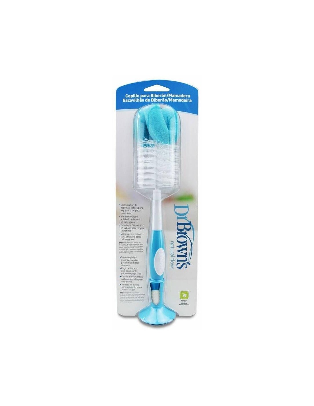 Los cepillos de Dr. Brown´s limpian los biberones y tetinas en profundidad. Combinación de esponja y cerdas para lograr una limpieza minuciosa. Mango ranurado antideslizante para un fácil agarre. Extremo en la base para limpiar las tetinas en profundidad. Base con ventosa que lo mantiene sujeto en varias posiciones para colocarlo cerca del lavabo.\ \ *El color y/o diseño del producto puede variar.