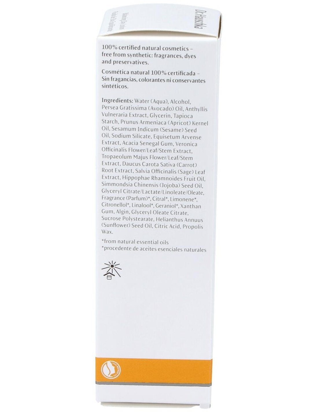 Aqua, Alcohol, Persea Gratissima Oil, Anthyllis Vulneraria Extract, Glycerin, Tapioca Starch, Prunus Armeniaca Kernel Oil, Sesamum Indicum Seed Oil, Sodium Silicate, Equisetum Arvense Extract, Acacia Senegal Gum, Veronica Officinalis Flower/Leaf/Stem Extract, Tropaeolum Majus Flower/Leaf/Stem Extract, Daucus Carota Sativa Root Extract, Salvia Officinalis Leaf Extract, Hippophae Rhamnoides Fruit Oil, Simmondsia Chinensis Seed Oil, Glyceryl Citrate/Lactate/Linoleate/Oleate, Parfum*, Citral*, Limonene*, Citronellol*, Linalool*, Geraniol*, Xanthan Gum, Algin, Glyceryl Oleate Citrate, Sucrose Polystearate, Helianthus Annuus Seed Oil, Citric Acid, Propolis Cera.