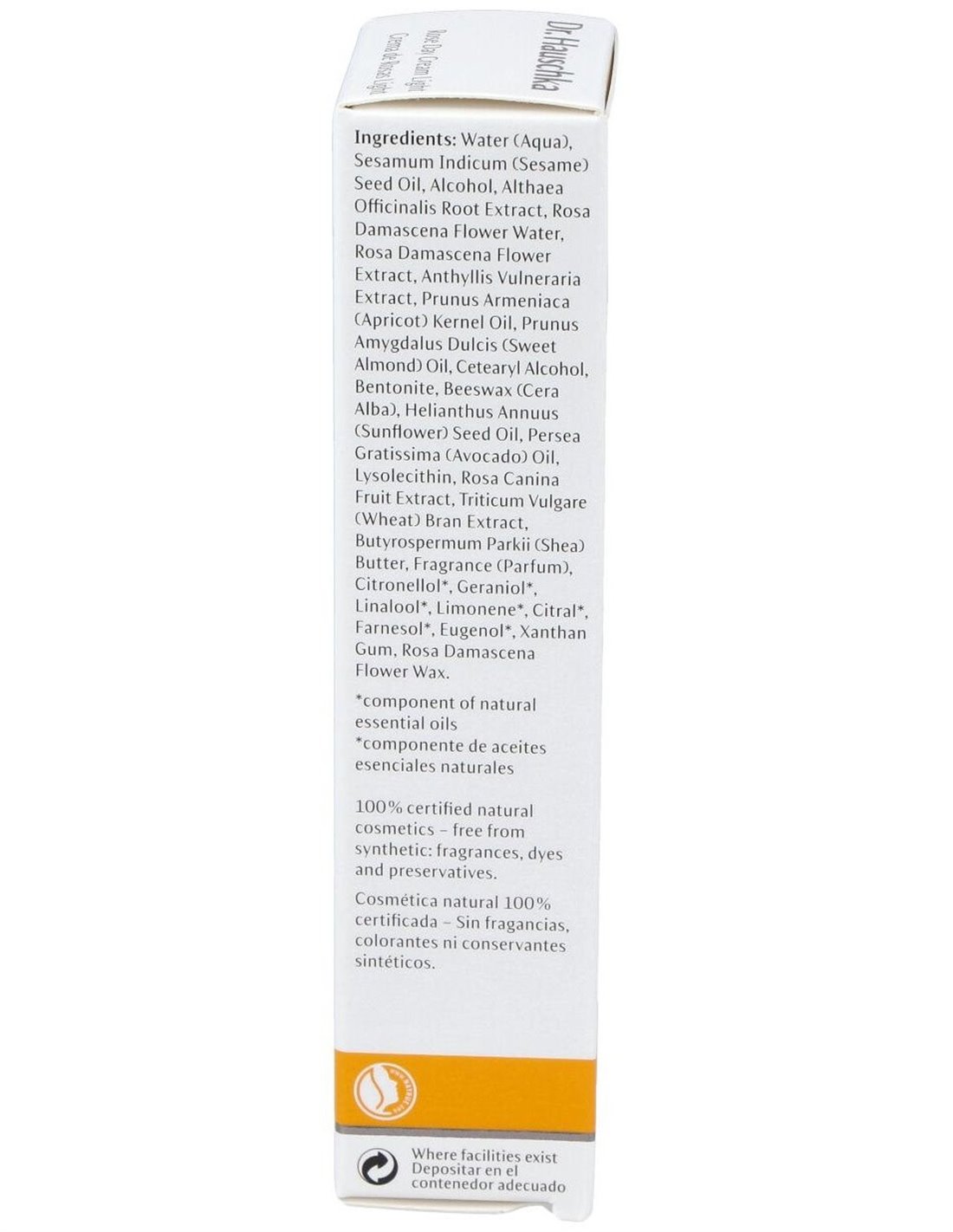 Water (Aqua), Sesamum Indicum (Sesame) Seed Oil, Alcohol, Althaea Officinalis Root Extract, Rosa Damascena Flower Water, Rosa Damascena Flower Extract, Anthyllis Vulneraria Extract, Prunus Armeniaca (Apricot) Kernel Oil, Prunus Amygdalus Dulcis (Sweet Almond) Oil, Cetearyl Alcohol, Bentonite, Beeswax (Cera Alba), Helianthus Annuus (Sunflower) Seed Oil, Persea Gratissima (Avocado) Oil, Lysolecithin, Rosa Canina Fruit Extract, Triticum Vulgare (Wheat) Bran Extract, Butyrospermum Parkii (Shea) Butter, Fragrance (Parfum)*, Citronellol*, Geraniol*, Linalool*, Limonene*, Citral*, Farnesol*, Eugenol*, Xanthan Gum, Rosa Damascena Flower Wax. *componente natural de aceites esenciales