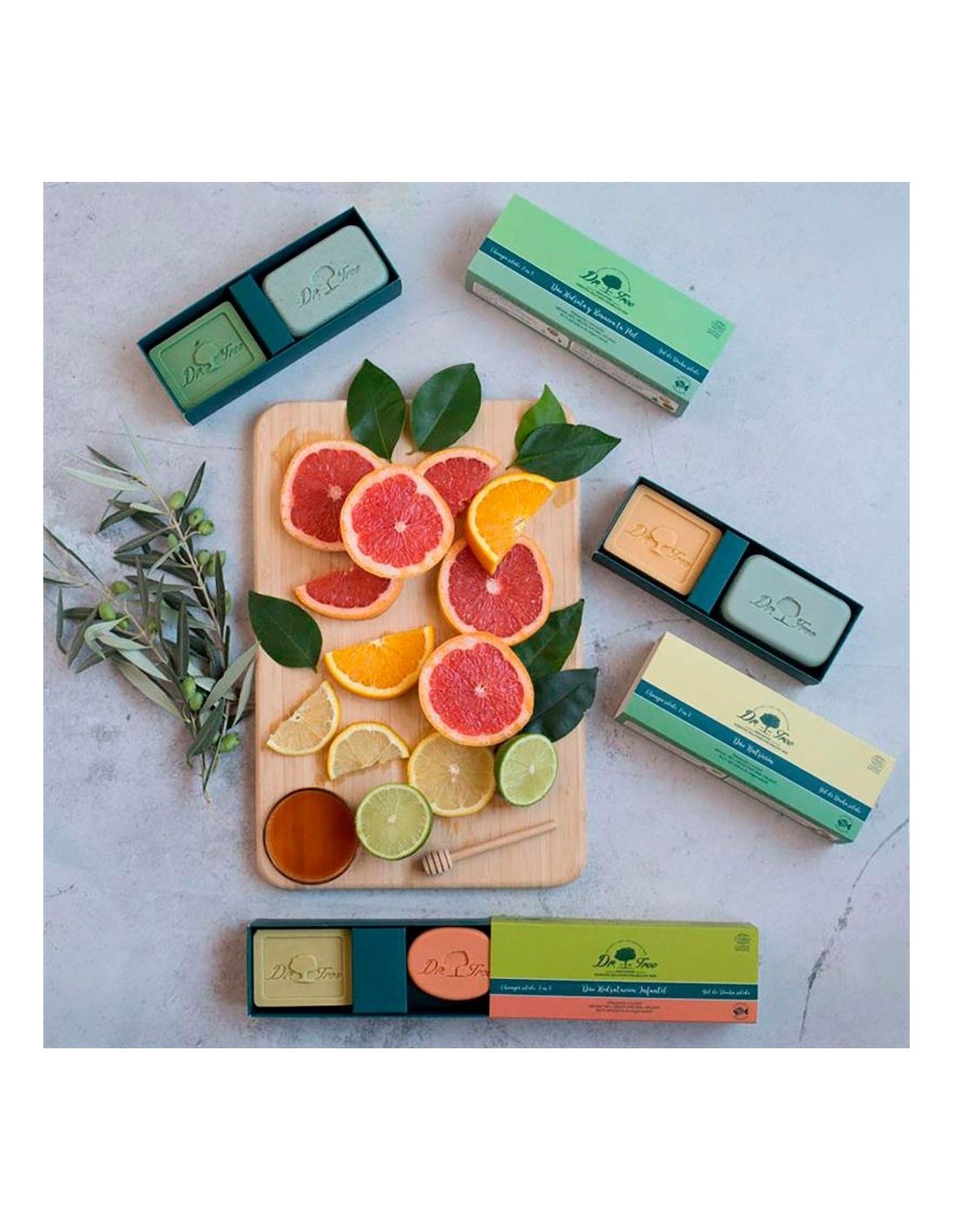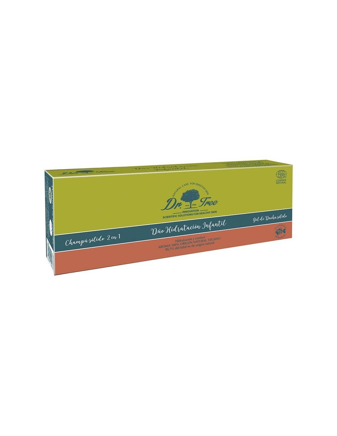 DR. TREEContiene:\ - Gel de ducha sólido júnior que limpia, calma, hidrata y protege, generando una espuma, suave, cremosa y delicada. El gel sólido para niños es un concentrado cremoso y no conglomerado.\ \ - Champú 2 en 1 Hidratante, formulado a base de un concentrado de tensioactivos suaves y cremosos que forman una espuma densa y lujosa.