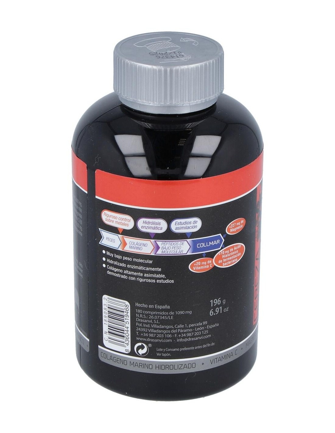 Con Colágeno Marino Hidrolizado enzimáticamente, Ácido hialurónico, Magnesio y Vitamina C, que contribuye a la formación normal de Colágeno para el funcionamiento normal de cartílago, huesos y piel.
