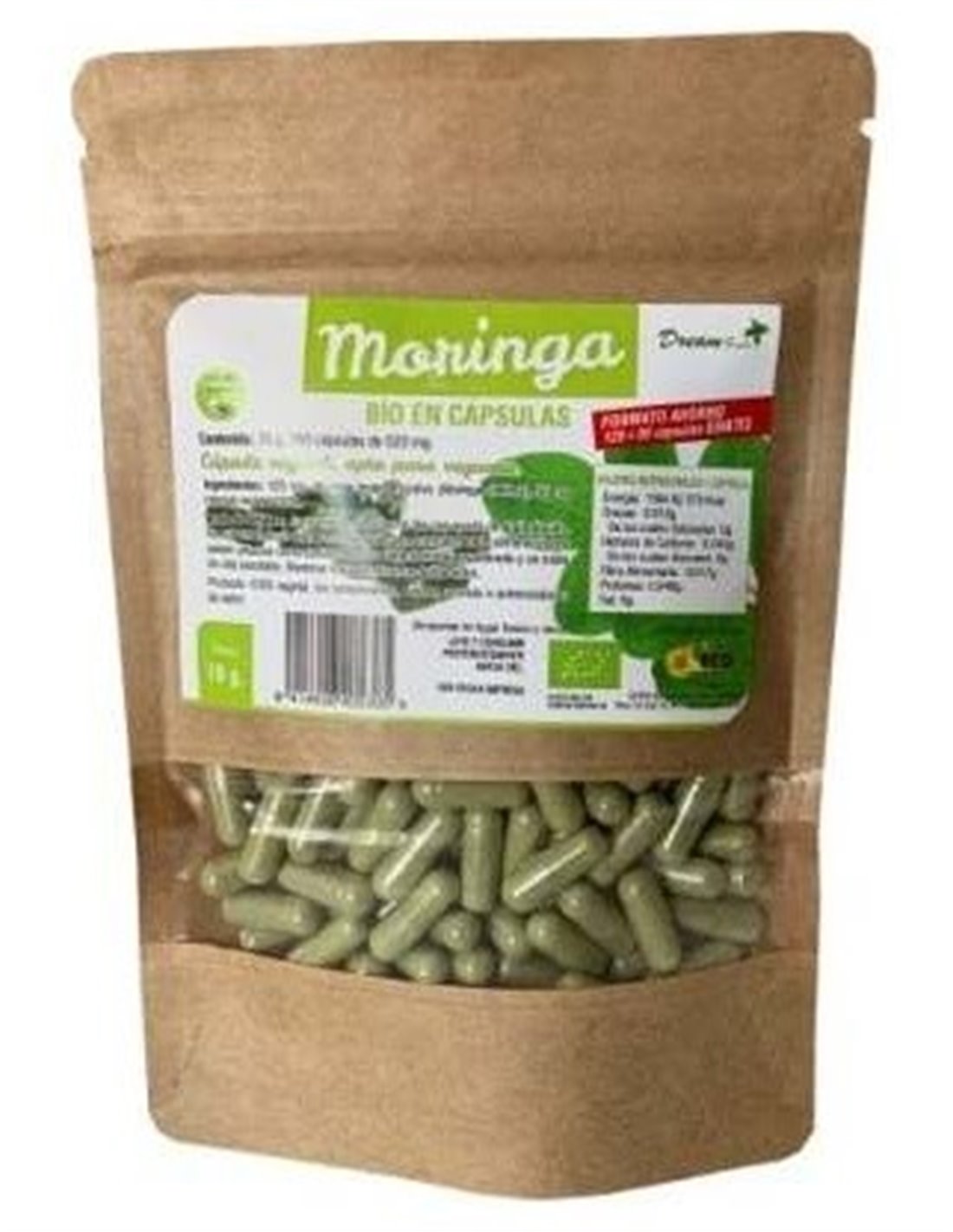 280 mg moringa procedente de agricultura ecológica, 100 mg cápsula vegetal (hidroxipropilmetilcelulosa)