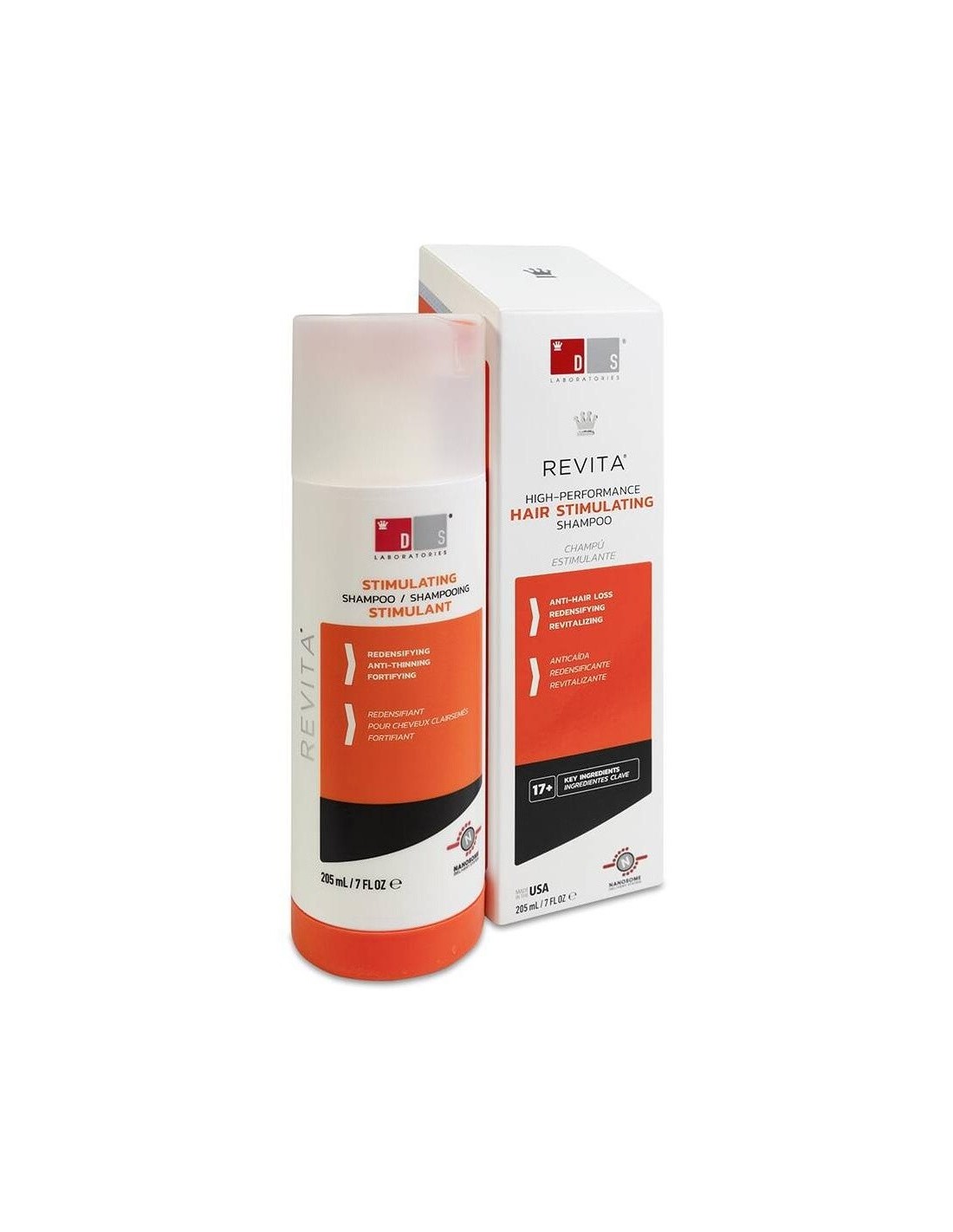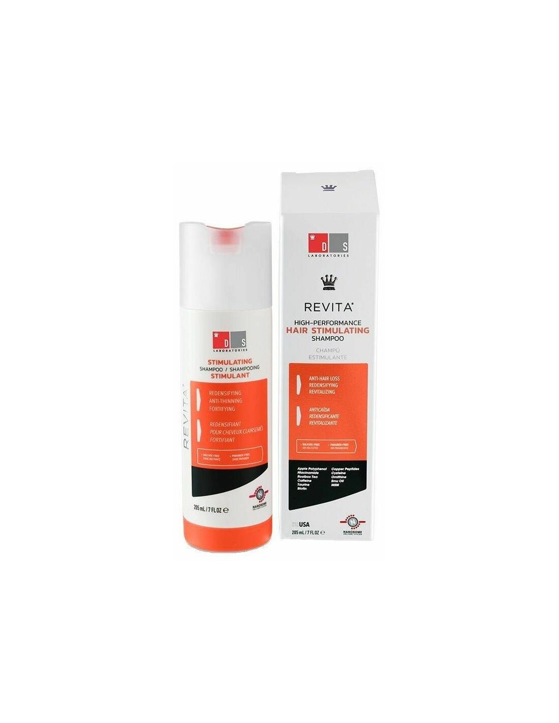 DS LABORATORIESProporciona excelentes resultados para hombres y mujeres preocupados por la caída del cabello, el adelgazamiento del cabello y la alopecia androgénica (calvicie de patrón femenino o masculino). Revita Champú está formulado para mantener la vitalidad del cuero cabelludo y actuar contra la disfunción folicular. Mediante la sinergia de los novedosos ingredientes activos, Revita Champú mantiene la vitalidad del cuero cabelludo y actúa contra la pérdida del cabello. Combina las propiedades antioxidantes y antiandrógenas, además de potentes moléculas hidratantes, estimulantes del crecimiento capilar y aminoácidos.