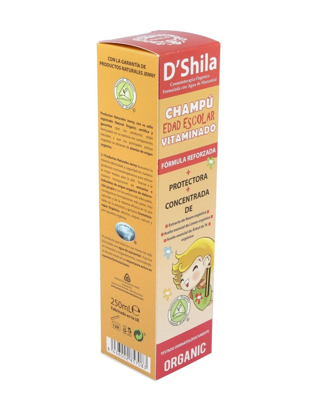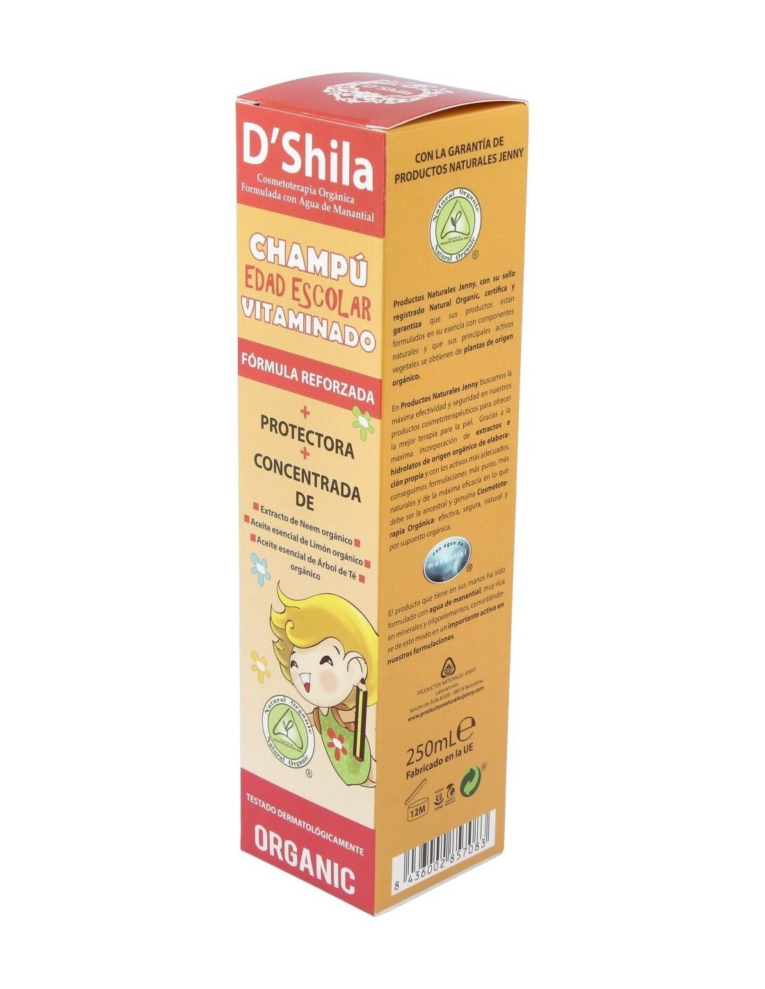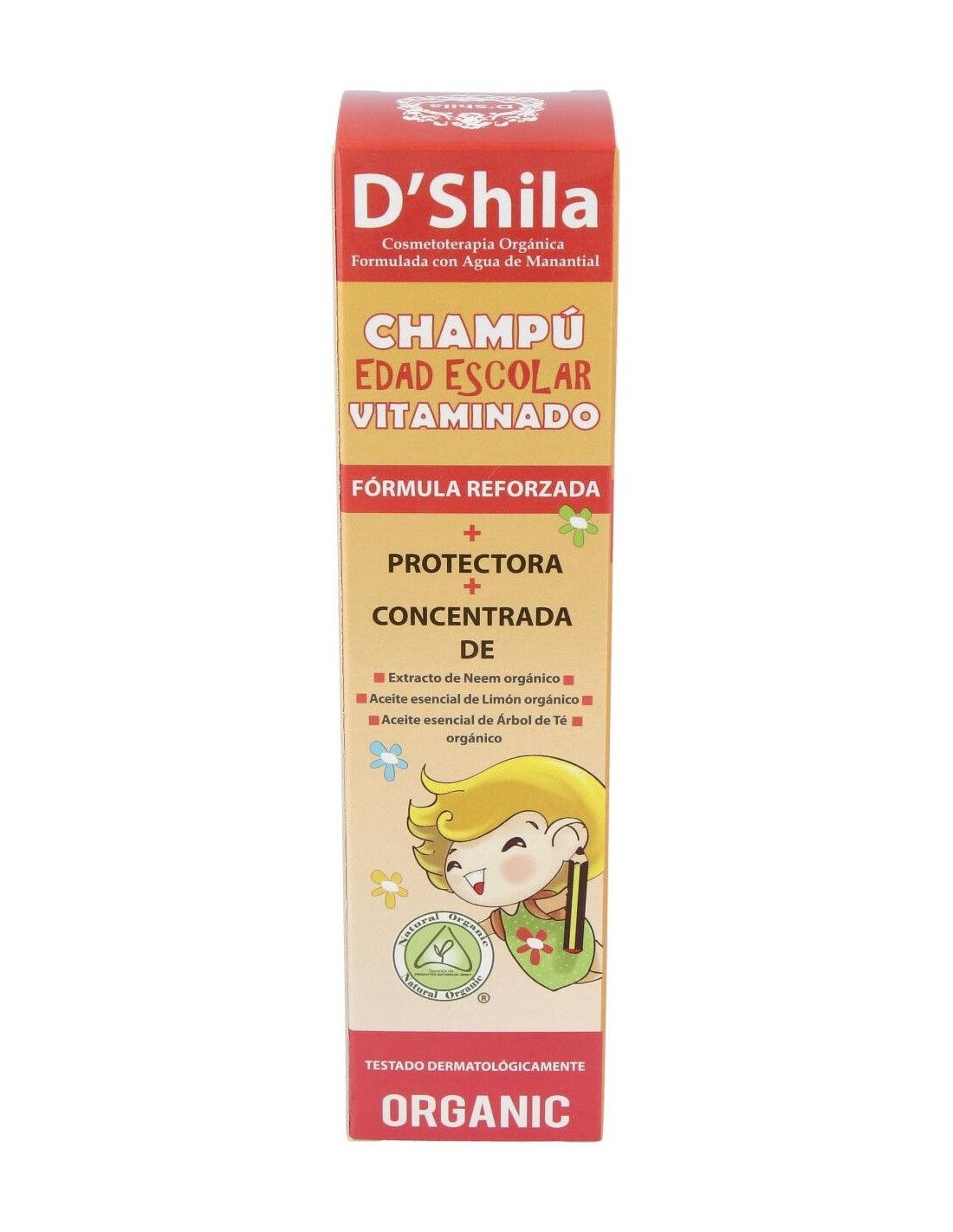 D'shila champú vitaminado especial edad escolar consigue mantener el cabello limpio y suave durante mucho más tiempo. Posee una suave base lavante, formulada con almidón de maíz, que consigue eliminar todos los piojos acumulados en la raíz.