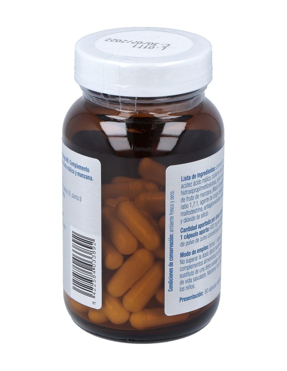 Complemento alimenticio a base de ácido málico y manzana. POMALIC (ACIDO MALICO) 60cap.