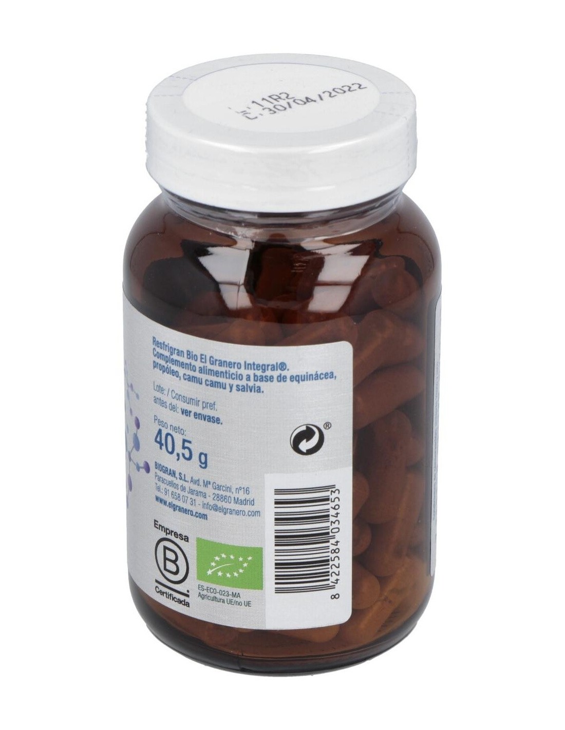 Complemento alimenticio especialmente recomendado para la prevención y el tratamiento de los procesos gripales y catarrales. Contiene camu camu, propóleo, equinácea y salvia, procedente de cultivo ecológico, Favorece el normal funcionamiento del sistema inmune, y ayuda a reducir el cansancio y la fatiga. Ayuda a calmar la tos. Tratamiento complementario de las afecciones recurrentes de las vías respiratorias superiores. Los complementos alimenticios no deben utilizarse como sustitutos de una dieta variada y equilibrada ni un modo de vida sano. Mantener fuera del alcance de los niños más pequeños. No superar la dosis diaria expresamente recomendada. Este producto no pretende diagnosticar, tratar, curar o prevenir ninguna enfermedad.
