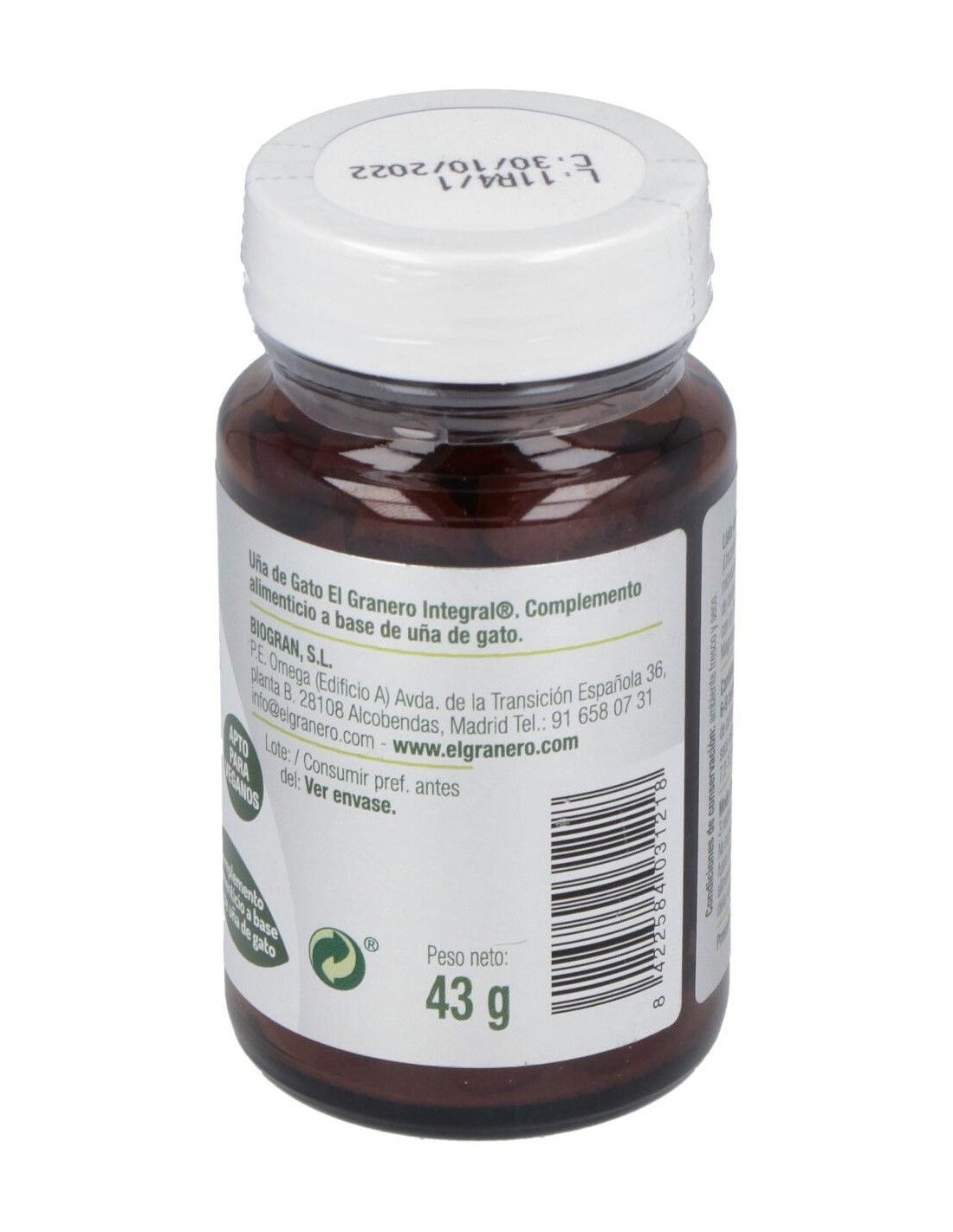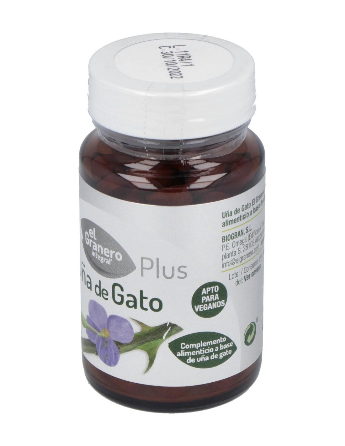 La Uña de Gato es muy utilizada para tratar problemas respiratorios, molestias articulares, aumentando defensas en nuestro organismo y como mejora para la circulación sanguínea. Es un estimulante del sistema inmune. También tiene actividad inhibidora de la proliferación de células anómalas lo que, junto a sus propiedades inmunoestimulantes, la hacen de gran interés como apoyo en la salud. Conservar en sitio fresco y seco. No superar la dosis diaria recomendada. No utilizar como sustituto de una dieta equilibrada. Mantener fuera del alcance de los niños.