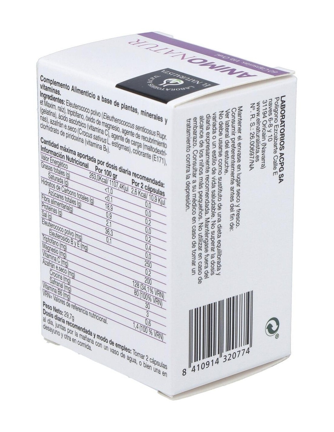 Excipientes: maltodextrinas (antiaglomerante), gelatina, colorante (E171)