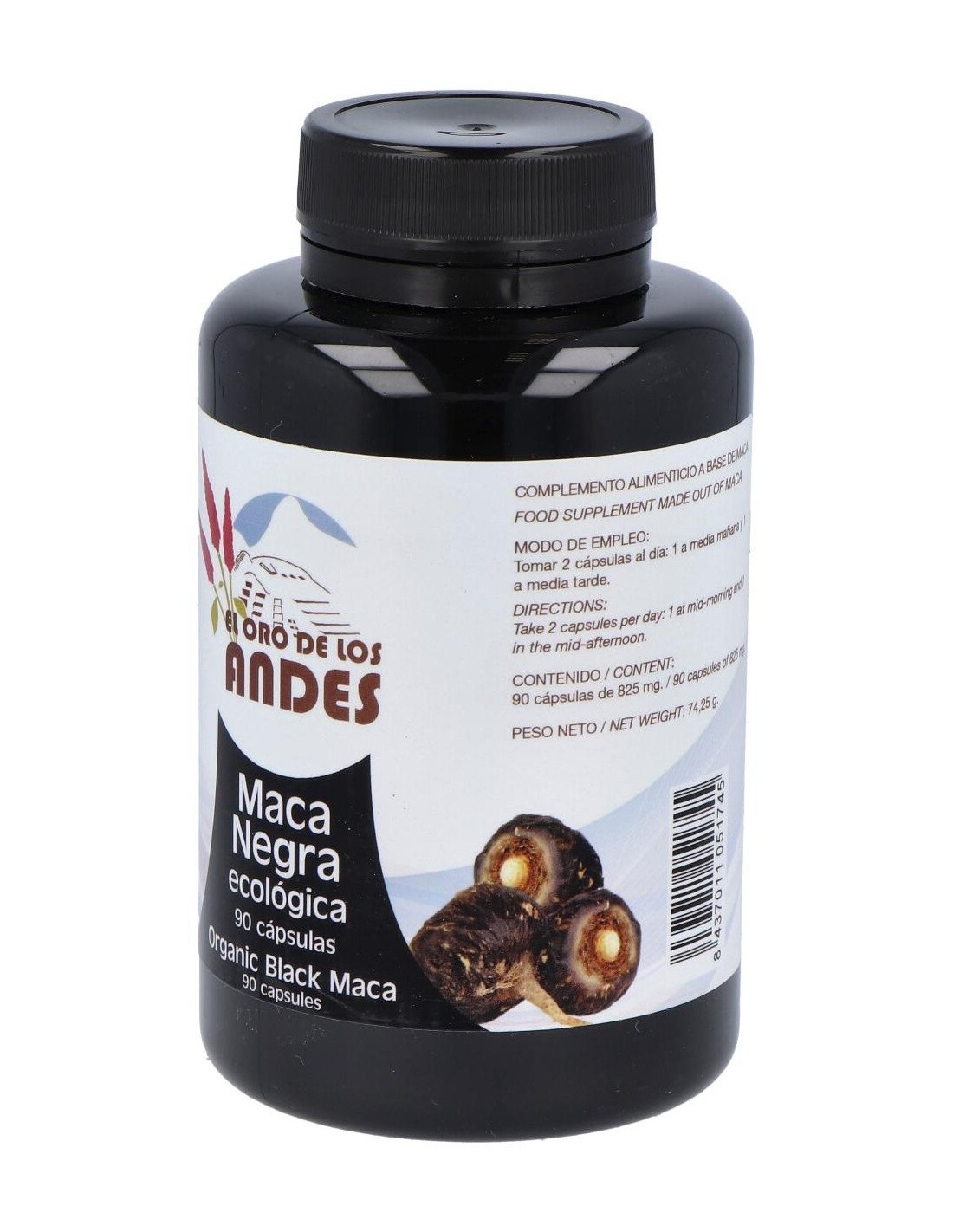 El Oro De Los Andes Maca Negra Ecológica 90 Cápsulas es un complemento alimenticio en formato de cápsulas a base de Maca negra que es una raíz andina a la que se le atribuyen beneficios en el rendimiento físico y mental y en el bienestar en general.