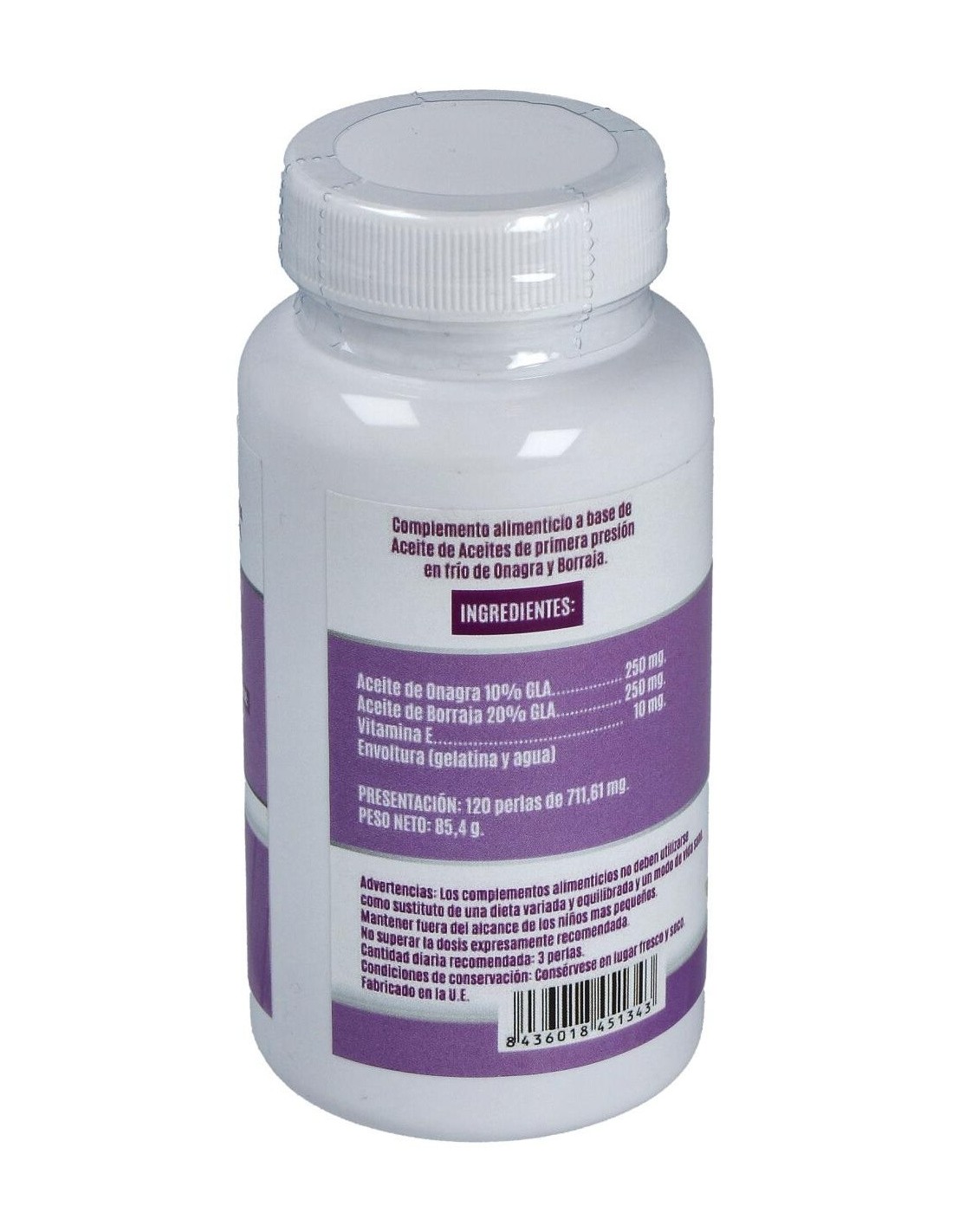 Complemento alimenticio basado en Onagra y Borraja, conservados tras la extracción de su aceite por presión en frío de sus semillas. Destacan por su riqueza en ácidos grasos esenciales necesarios para la correcta producción de prostaglandinas (precursores de las hormonas capaces de regular muchas funciones del organismo). Contribuye a paliar los síntomas premenstruales y a la salud de la piel, ayuda al control del colesterol y problemas del corazón, entre otros. También contiene sales minerales, vitamina E, mucílagos y flavonoides que le aportan propiedades diuréticas y sudoríficas, permitiendo la eliminación de toxinas.