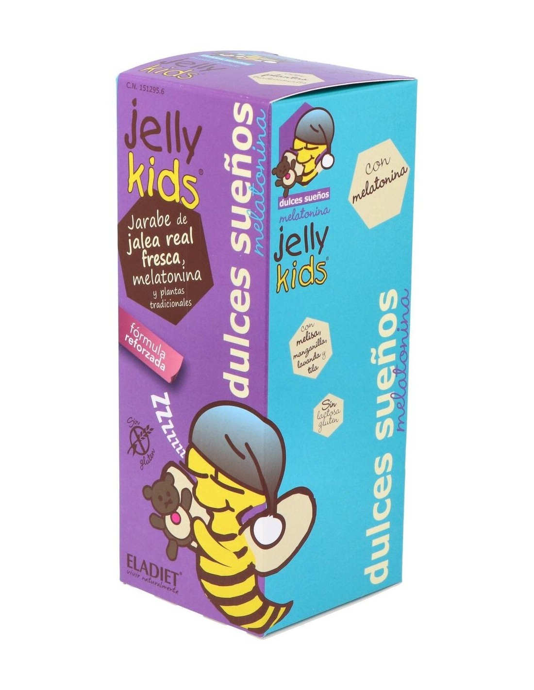 Complemento alimenticio de jalea real fresca, plantas tradicionales y melatonina. La melatonina contribuye a reducir el tiempo necesario para conciliar el sueño.