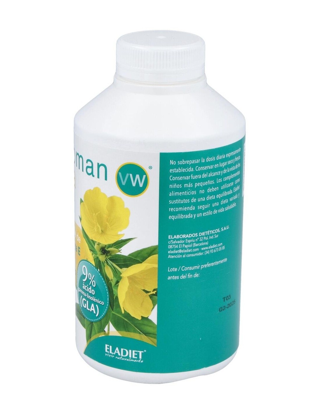 Suplemento a base de aceite de onagra y vitamina E obtenido de su primera presión en frío. Aporta GLA.