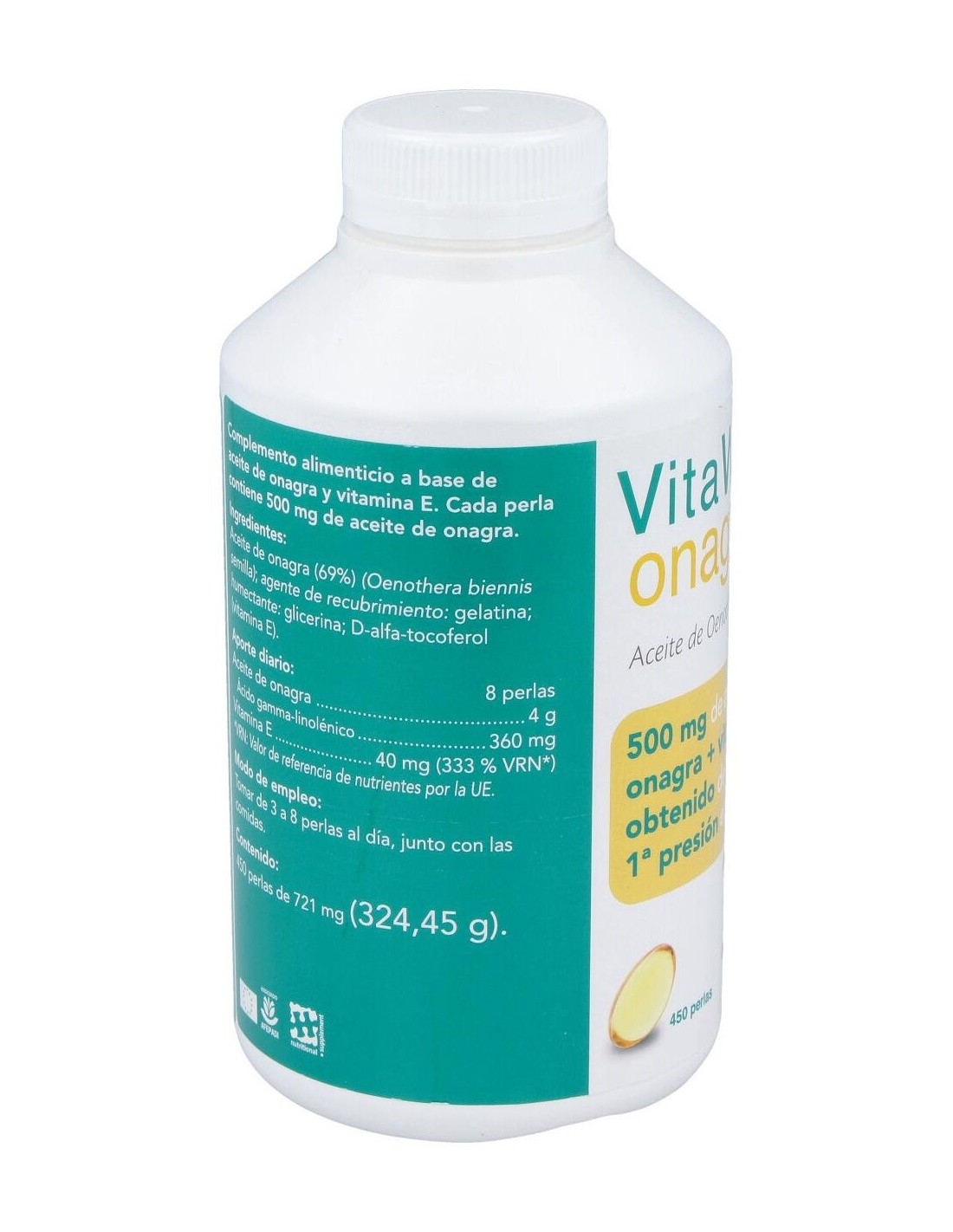 4 g de aceite de onagra y 20 mg de vitamina E.