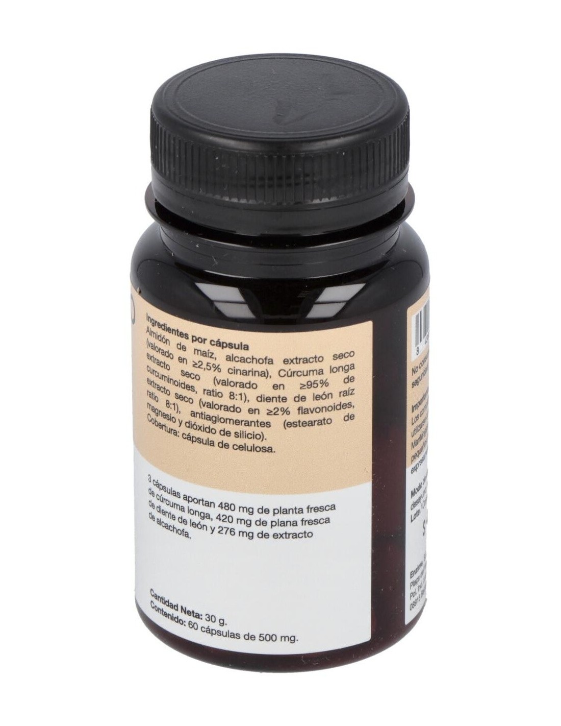 Curcuma Longa Polvo (166 Mg), Curcuma Longa (150 Mg), Diente De León (140 Mg), Polvo De Diente De León (140 Mg), Extracto Seco De Alcachofa (92 Mg), Cardo Mariano (60 Mg), Alcachofa (32 Mg).