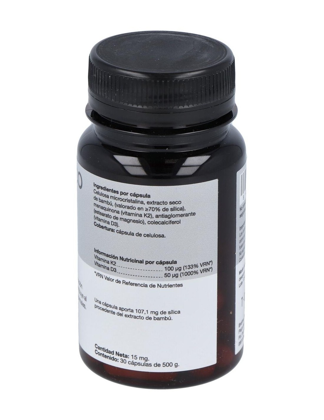 Complemento alimenticio a base de Vitamina D3, K2 y silicio. Estos ingredientes contribuyen al mantenimiento de los huesos en condiciones normales.