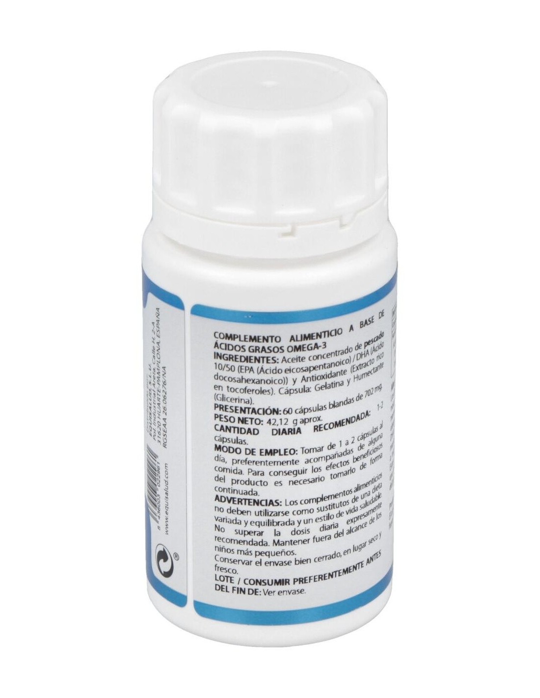 Equisalud Omega 3 DHA Alto Contenido EPA50-DHA250 60caps es un complemento alimenticio con DHA, componente fundamental para la función del sistema nervioso y visual, que ayuda a facilitar el trabajo neuronal y las funciones de aprendizaje y memorización.