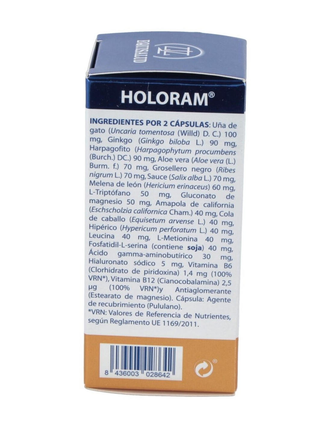 Melena de león, Uña de gato, Ginkgo, Harpagofito, Aloe vera, Grosellero negro, Sauce, Amapola de California, Cola de caballo, Hipérico, GABA, Hilauronato sódico, L Triptófano, Leucina, L-Metionina, Fosfatidil L-Serina, Gluconato de Magnesio, Vitamina B6, Vitamina B12. Envoltura de polisacárido de origen vegetal (pululano).