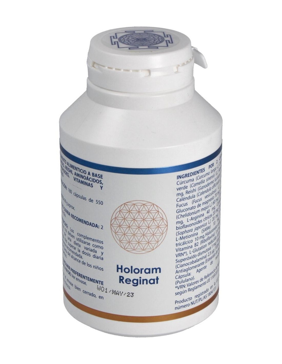 Holoram Reginat es un complemento alimenticio bio-regulador de la respuesta a procesos degenerativos. Gracias a su formulación promueve la activación de los programas antioxidantes naturales y el equilibrio de los programas de inmunidad celular y humoral.