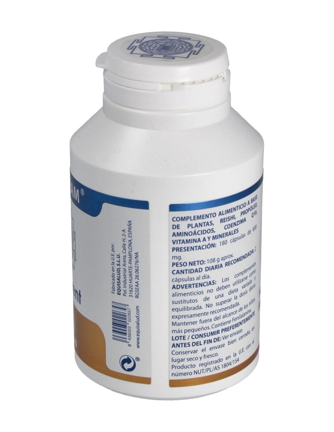 BORRAJA, SAUCO, EQUINÁCEA, ESCARAMUJO, ROMERO, TOMILLO, GORDOLOBO, JENGIBRE, CURCUMA, REISHI ZINC, SELENIO, CALENDULA, BETA-CAROTENO PROPOLEO, L-CISTEINA, L-FENILALANINA, COENZIMA Q10, L-TIROSINA.