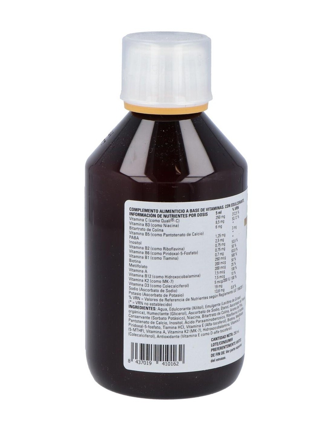 Es un suplemento dietario multivitamínico para fortalecer las defensas del sistema inmunológico. Con sabor a piña. Ayuda a superar estados carenciales del completo vitami´nico. Liposomal con su tecnologi´a liposomal aporta una buena biodisponibilidad. Contiene vitamina C, vitamina B3, colina, vitamina B5, vitamina B6, vitamina A, vitamina K2, vitamina D3, sodio y potasio.