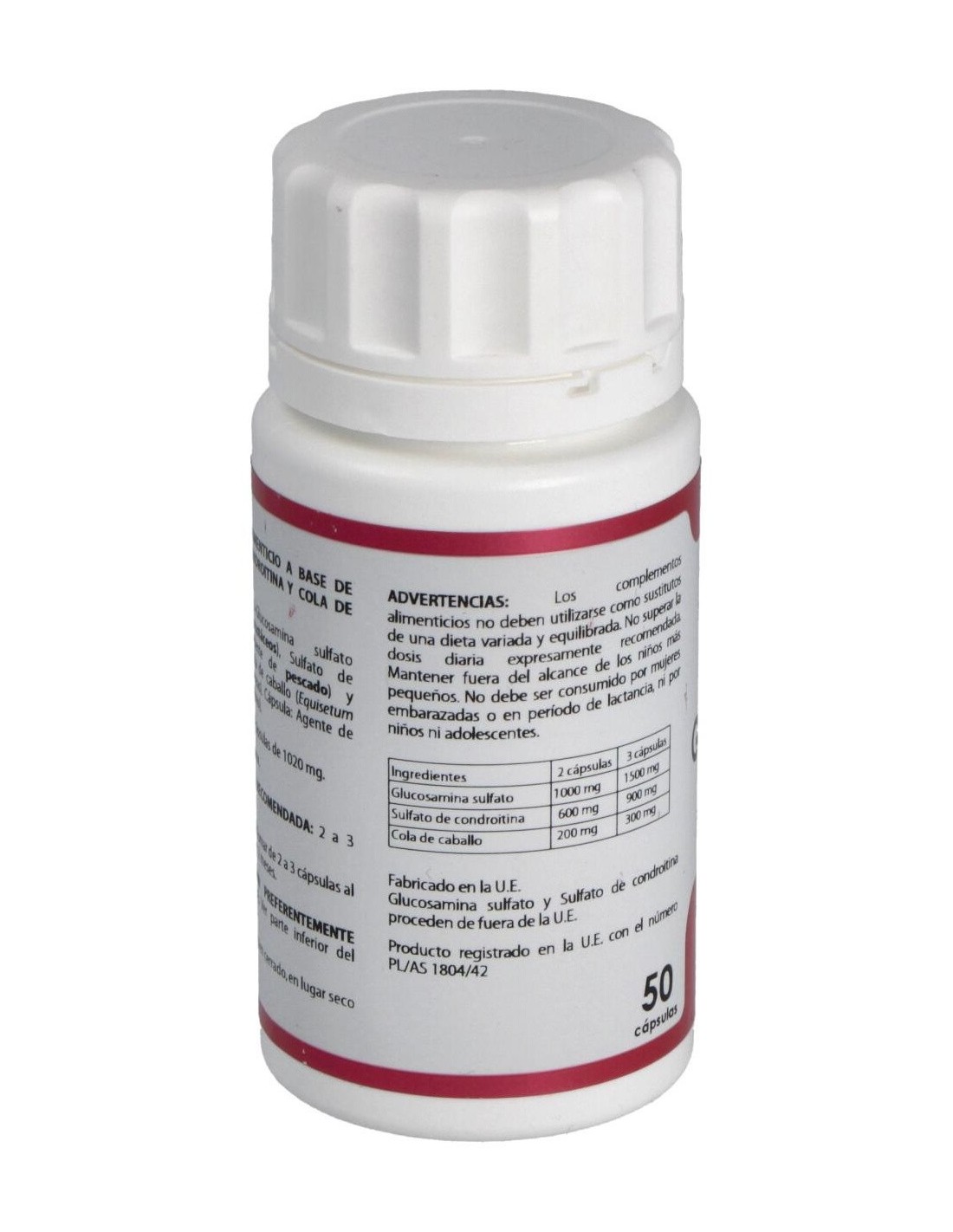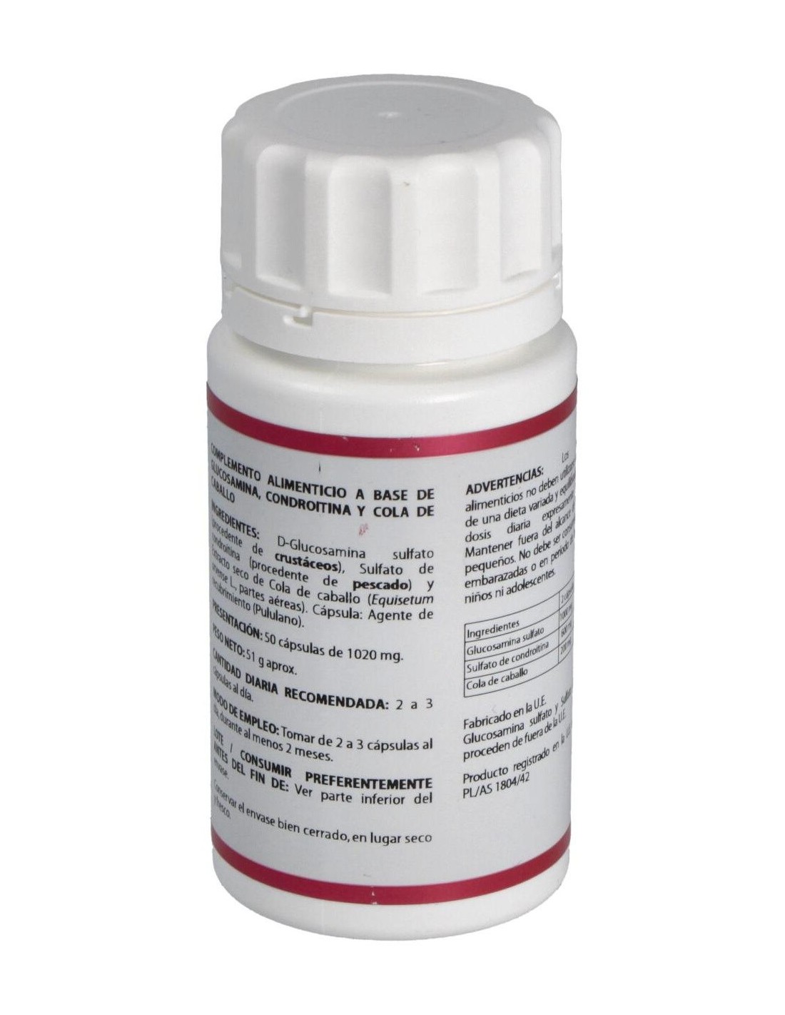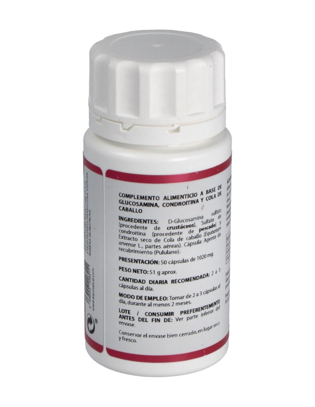 Glucosamina sulfato, Condroitina sulfato, Cola de Caballo. Envoltura de polisacárido de origen vegetal (pululano)