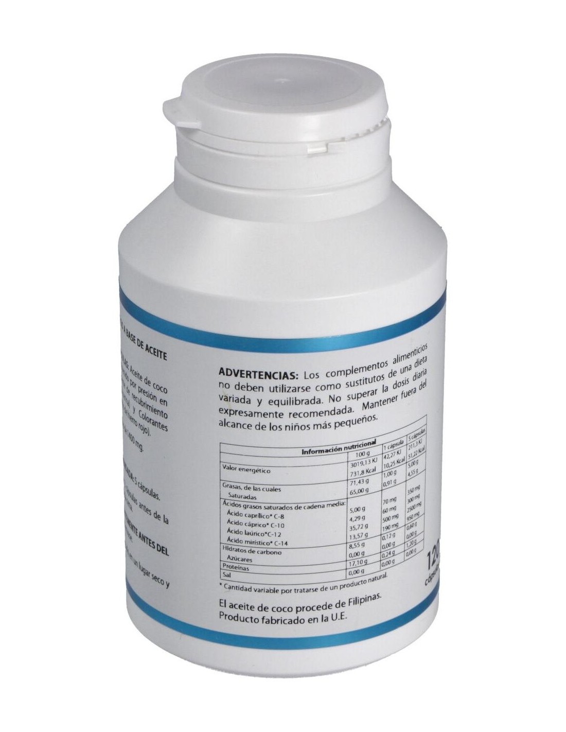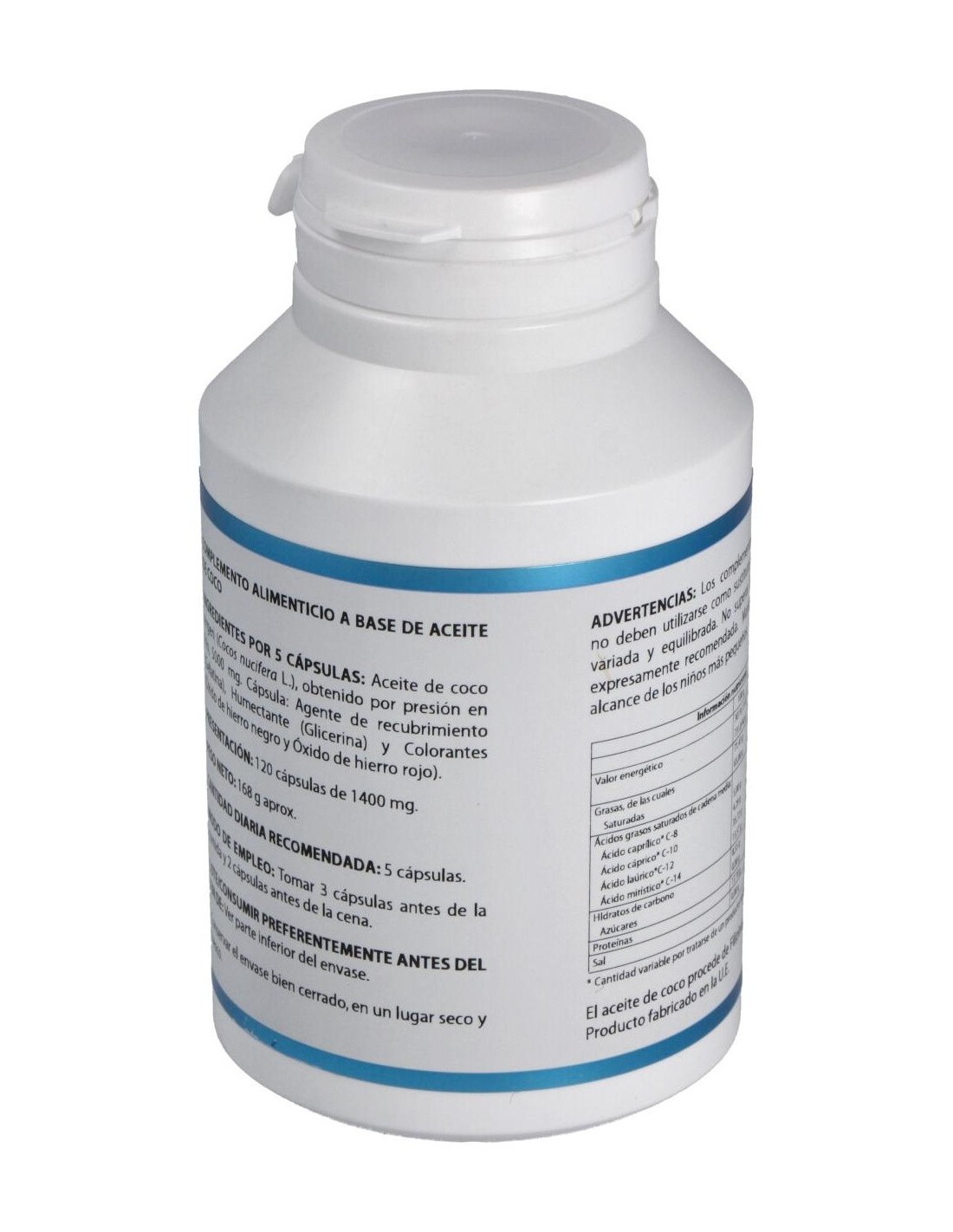 Aceite De Coco* Virgen Y Orgánico (Cocos Nucifera L.) Obtenido Por Presión En Frío, 1.000 Mg. Cápsulas De Gelatina Blanda. Contiene: Agente De Recubrimiento (Gelatina), Humectante (Glicerina) Y Colorantes (Óxido De Hierro Negro Y Óxido De Hierro Rojo).
