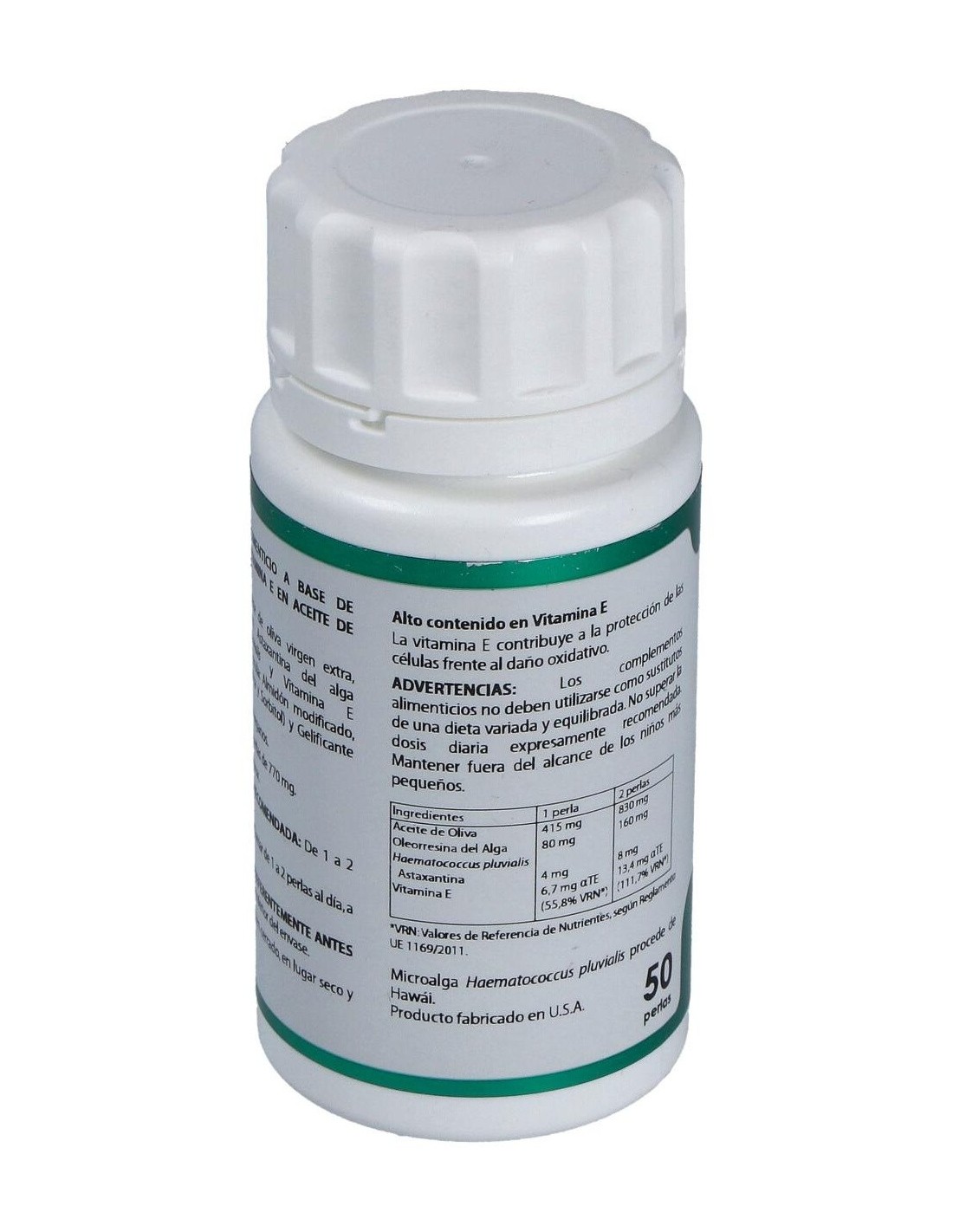 MICROALGA HAEMATOCOCCUS PLUVIALIS, ASTAXANTINA, LUTEÍNA, BETACAROTENO, VITAMINA E NATURAL, ACEITE DE CÁRTAMO ALTO OLEICO.