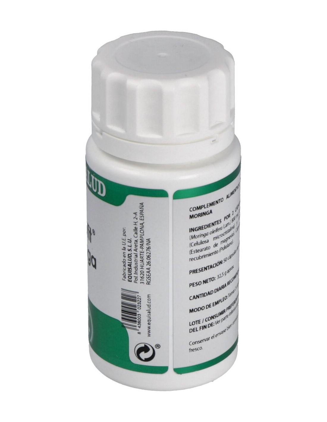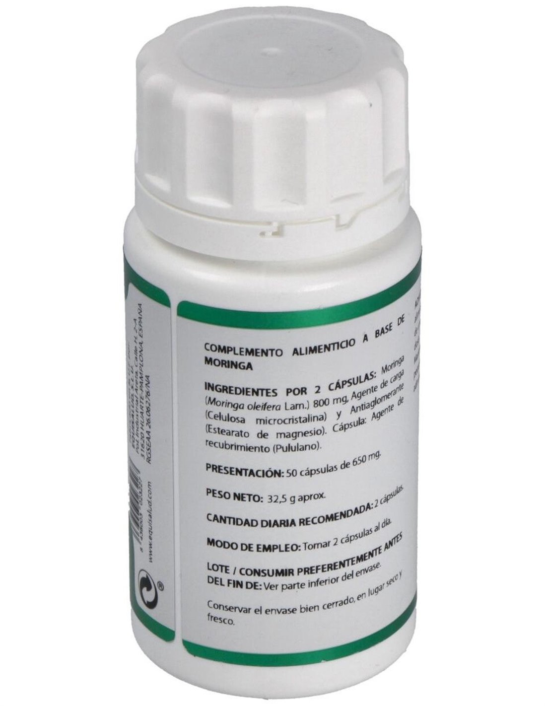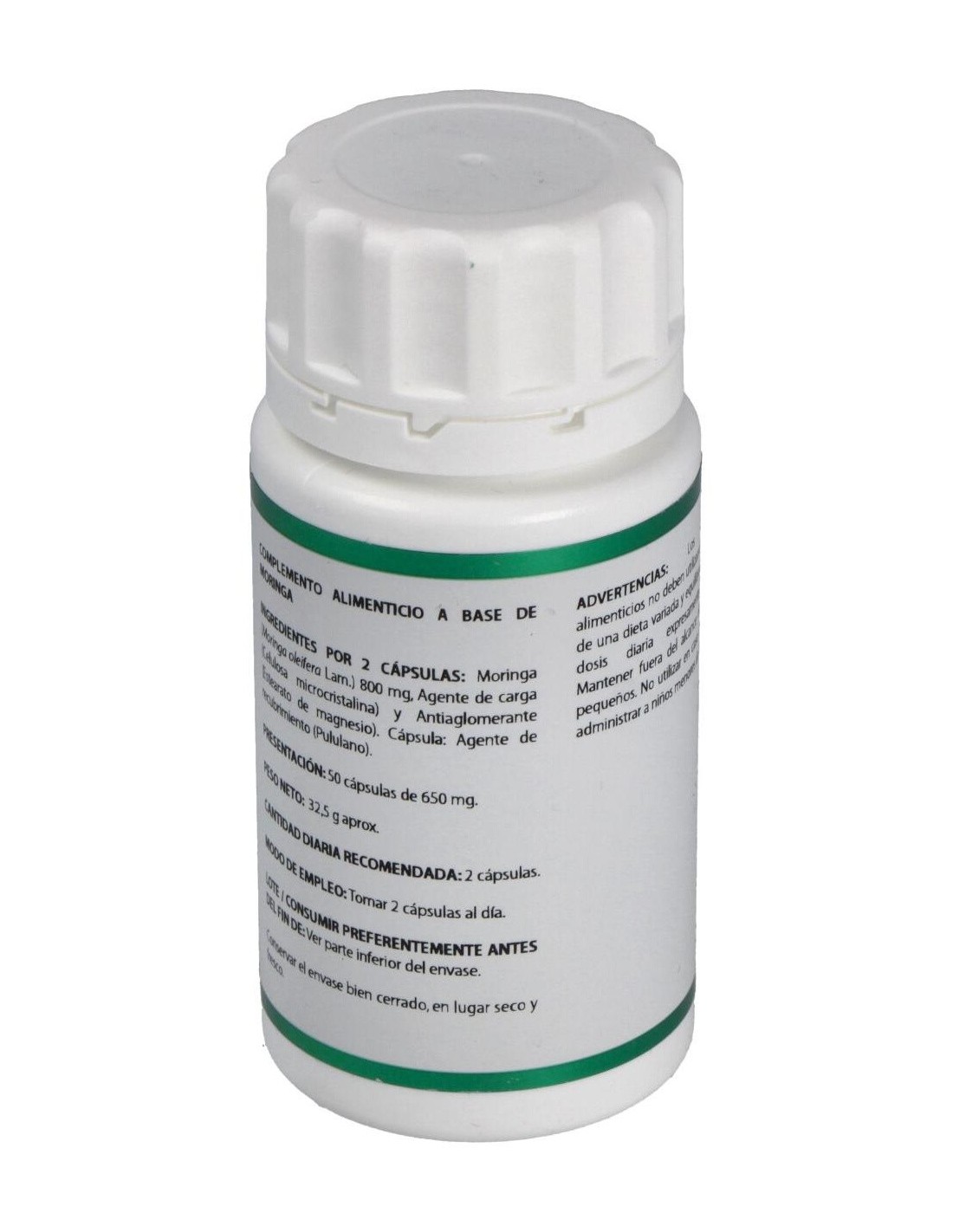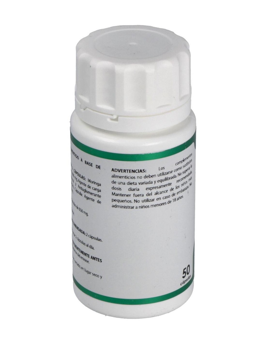 Moringa extracto seco (Moringa oleifera Lam., hoja, ratio 4:1), 400 mg. Excipientes tecnológicos: celulosa microcristalina (agente de carga), c.s. y estearato de magnesio (antiaglomerante), c.s. Envoltura: polisacárido de origen vegetal (pululano)