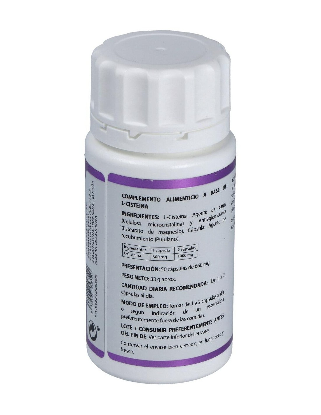 Complemento alimenticio a base de L-cisteína. Se trata de un aminoácido no esencial que aporta azufre y forma parte del glutatión, por lo que tiene efecto antioxidante sobre las células e impide la oxidación de las proteínas.