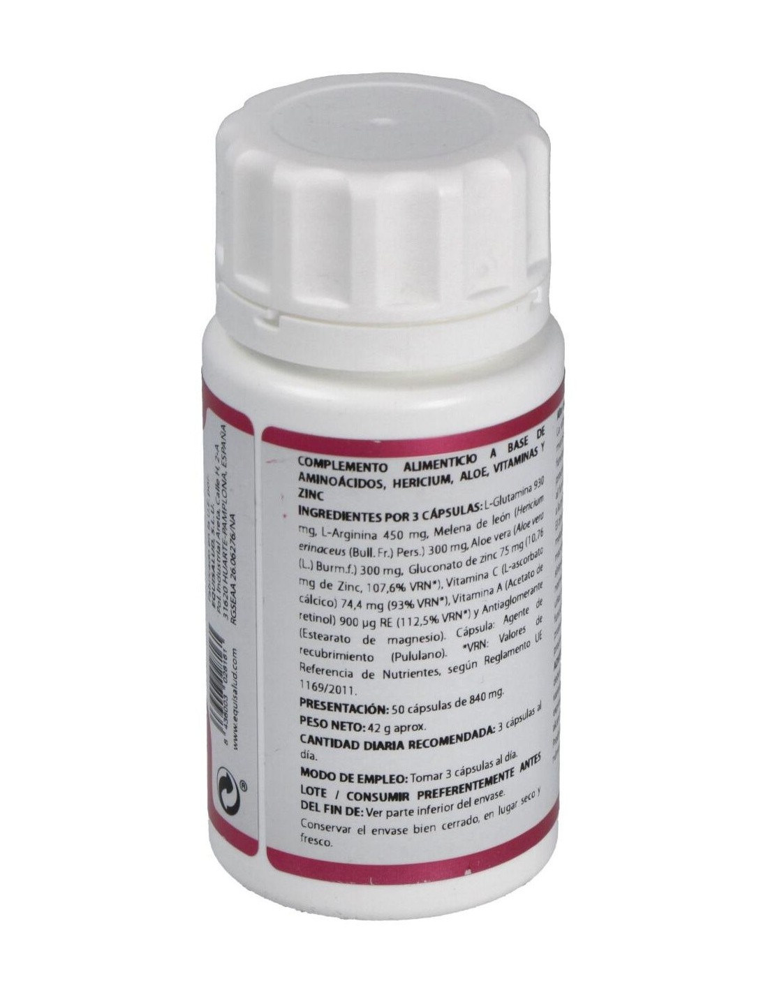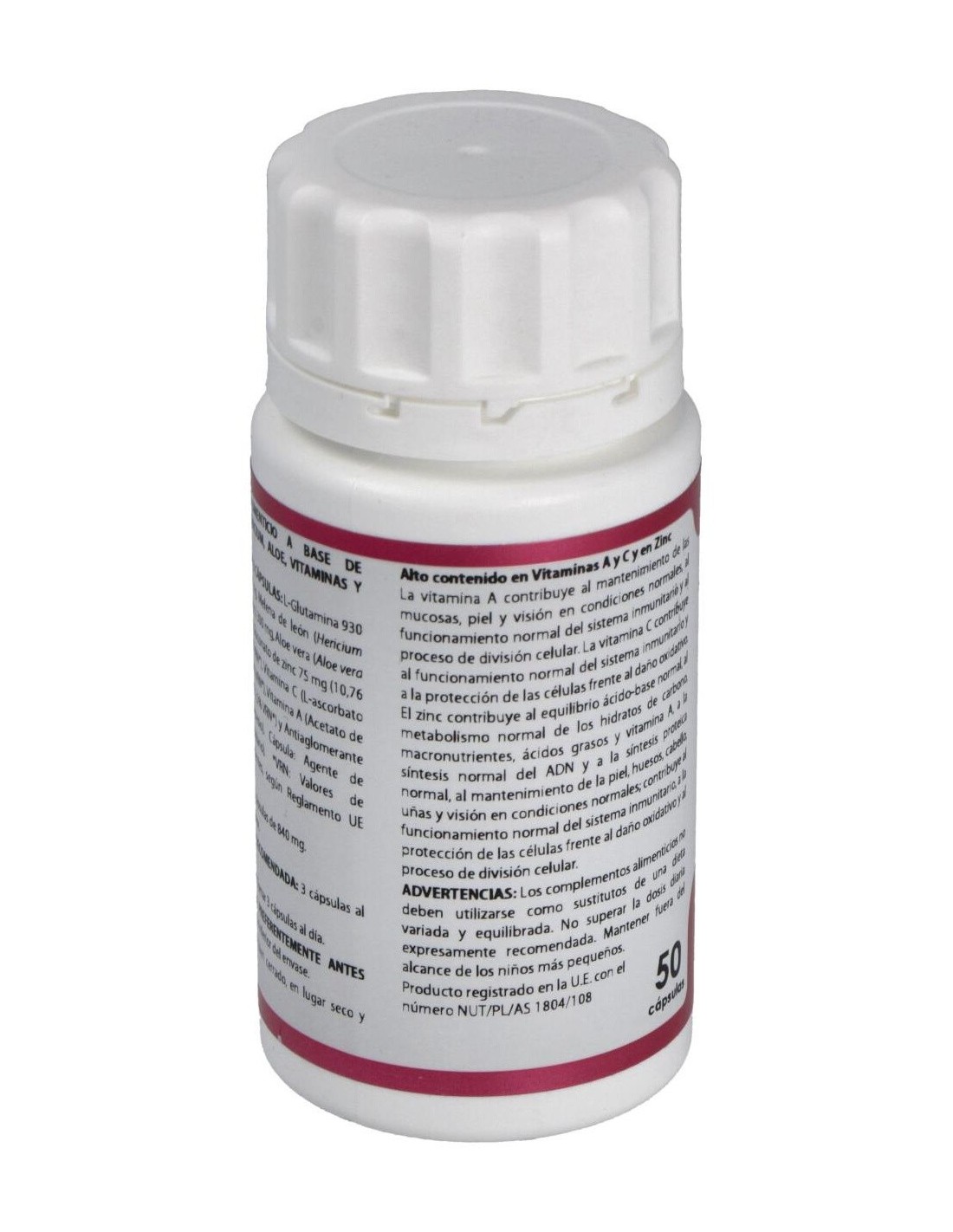 Aloe vera, Estearato de magnesio c.s. Gluconato de Zinc, L-arginina, L-glutamina, Melena de león (Hericium erinaceus), Vitamina A (Retinol), Vitamina C. Envoltura de poliscárido de origen vegetal (pululano)