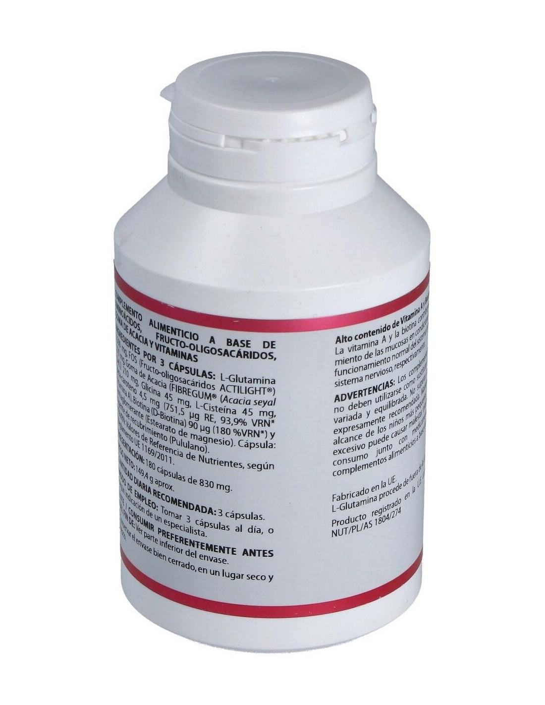 L-Glutamina, Fructo-oligosacáridos (ACTILIGHT ® 950P), Acacia (FIBREGUM® B), Betacaroteno, Glicina, L-Cisteína, D-Biotina, Estearato de magnesio. Envoltura de polisacárido de origen vegetal (pululano).