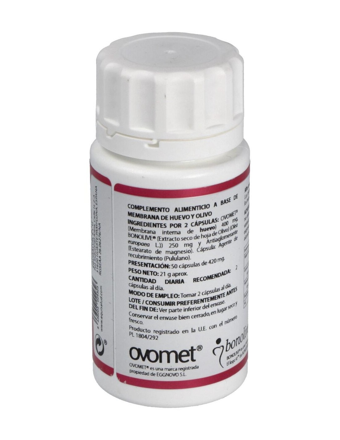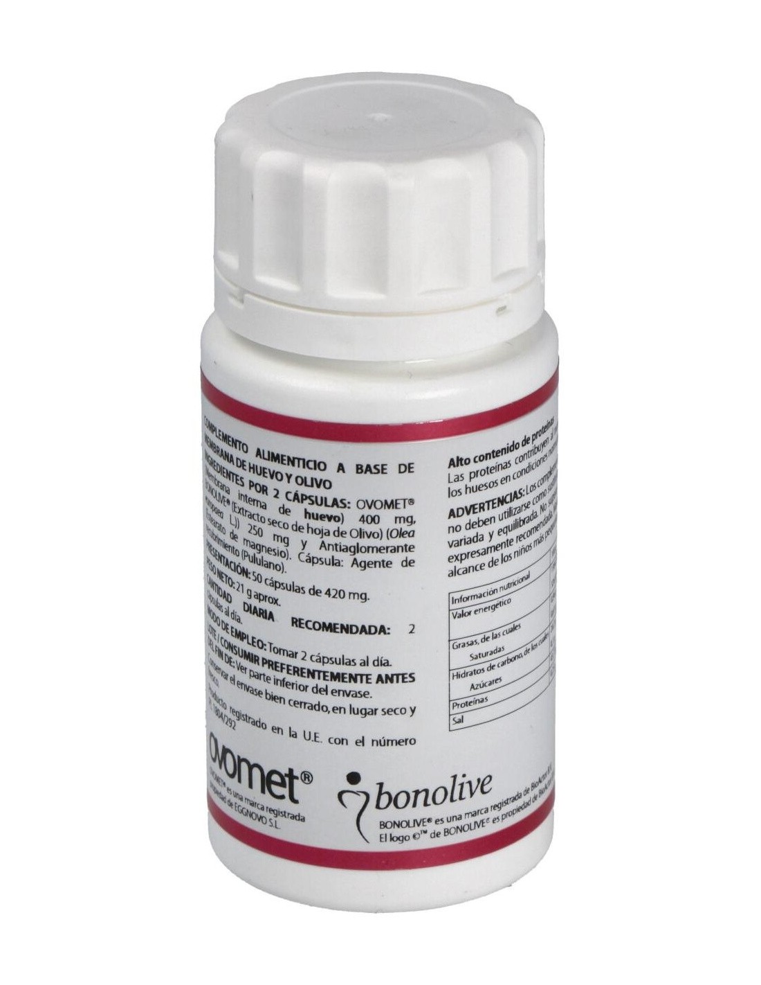 Membrana interna de huevo (OVOMET®), Olivo (BONOLIVE®), Estearato de magnesio. Envoltura de polisacárido de origen vegetal (pululano).