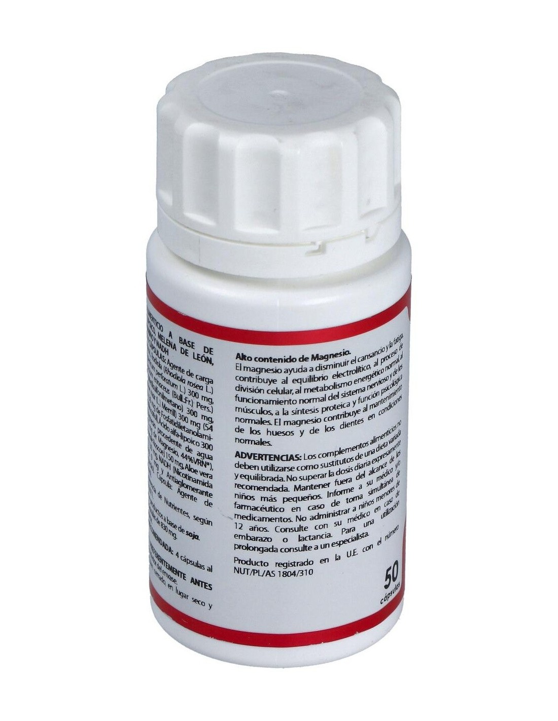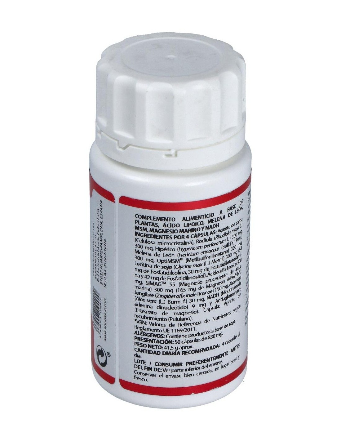 Rodiola, Hipérico, Melena de León, OptiMSM, Lecitina de soja, Ácido alfa-lipoico, SIMAGTM 55, Jengibre, Aloe vera, NADH, Celulosa microcristalina, Estearato de magnesio. Envoltura de polisacárido de origen vegetal (pululano).