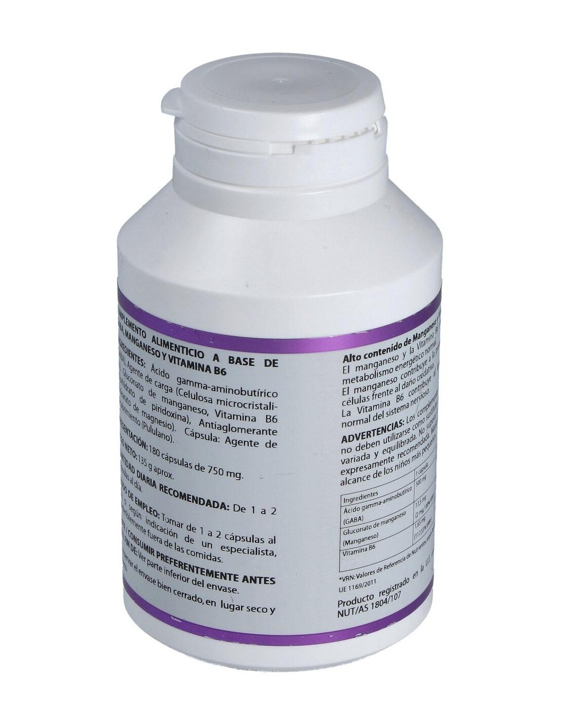 Complemento alimenticio a base de GABA, manganeso y vitamina B6. Actúa como un relajante natural inhibiendo al cerebro de funciones que puedan encontrarse sobrecargadas debido al estrés u otros factores.